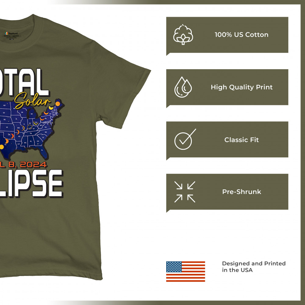 Immerse yourself in the celestial wonder with our solar eclipse graphic design. Depicting the enchanting interplay of the sun and moon, this shirt is essential for enthusiasts of astronomy. Don it with pride and commemorate the marvel of a total solar ecl
