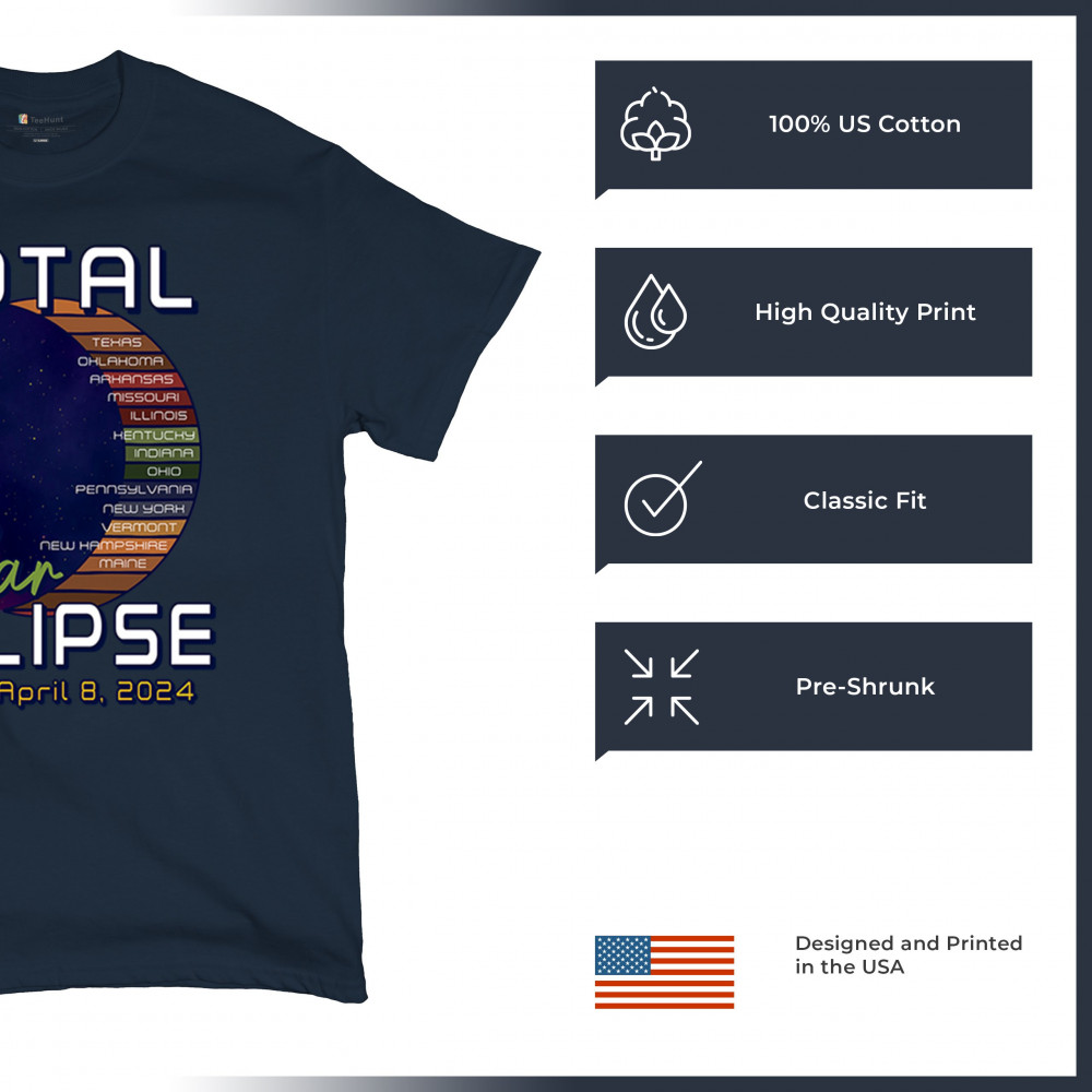 Embrace the celestial spectacle with our solar eclipse graphic design. Capturing the mesmerizing dance between sun and moon, this shirt is a must for astronomy lovers. Wear it proudly and celebrate the wonder of a total solar eclipse!