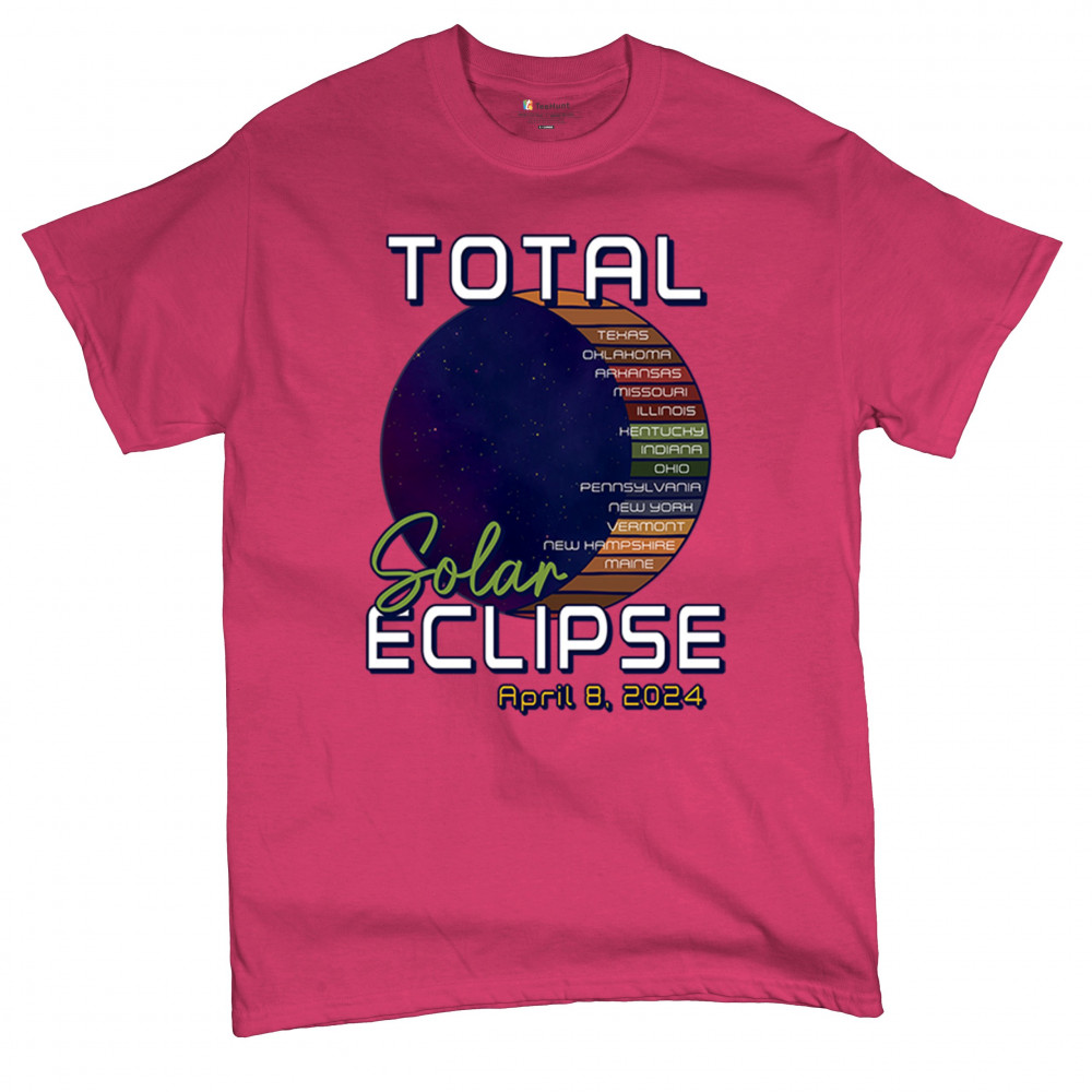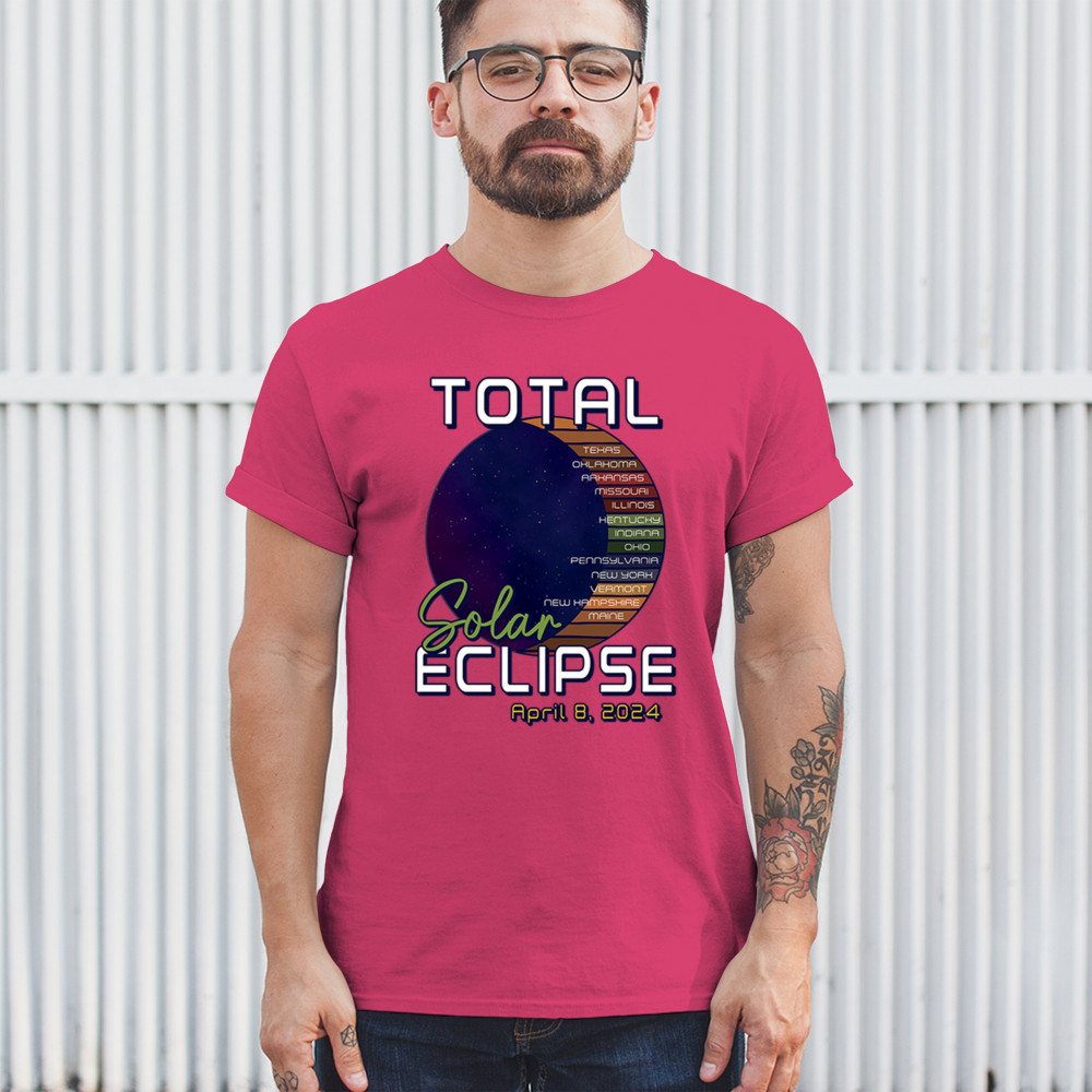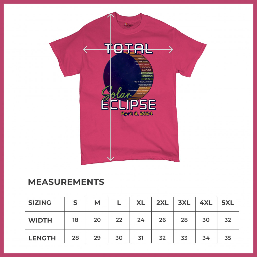 Embrace the celestial spectacle with our solar eclipse graphic design. Capturing the mesmerizing dance between sun and moon, this shirt is a must for astronomy lovers. Wear it proudly and celebrate the wonder of a total solar eclipse!