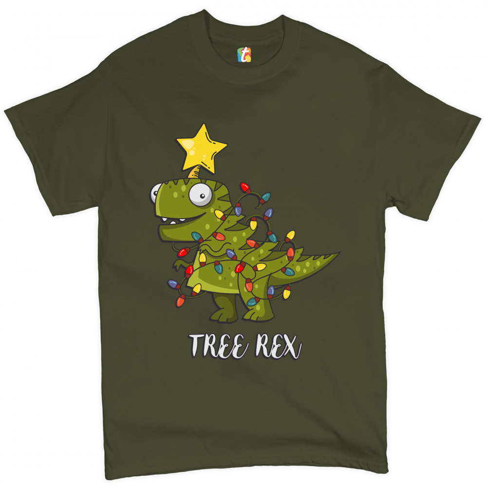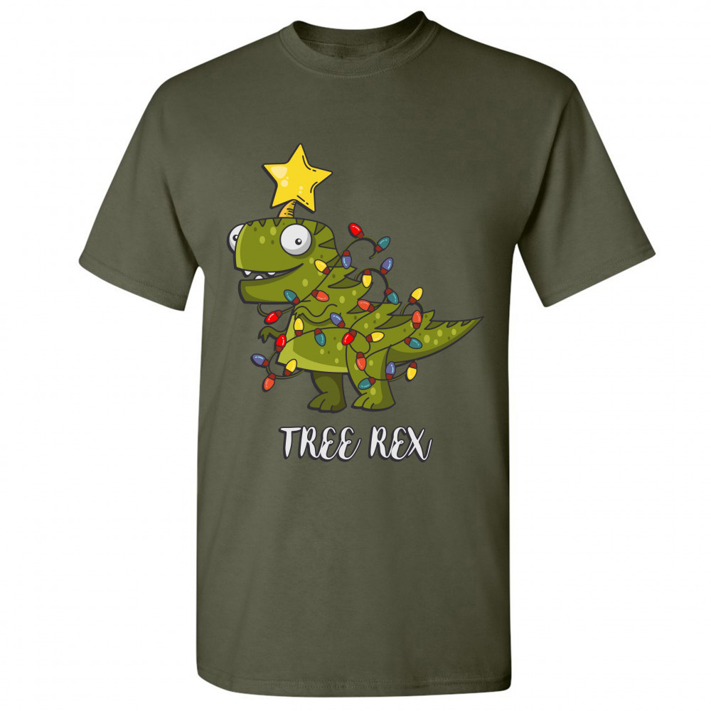 TREE REX t-shirt funny tyronnasaurus rex christmas tree dinosaur men's tee military green