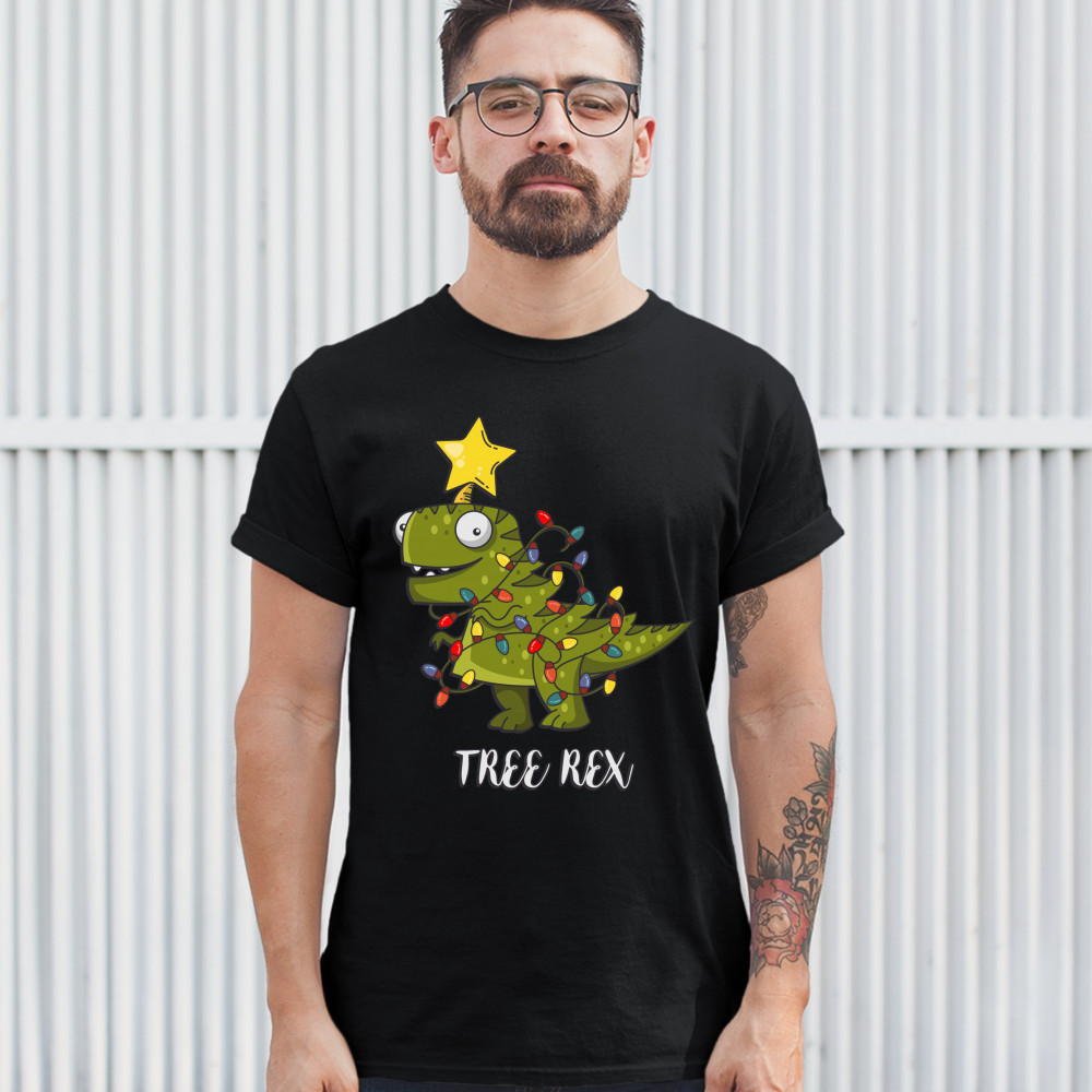 TREE REX t-shirt funny tyronnasaurus rex christmas tree dinosaur men's tee black