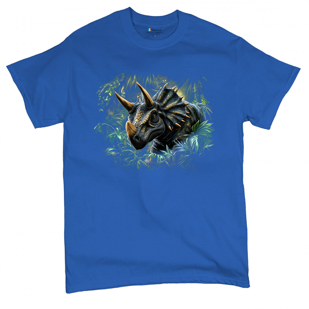 Charge into the past with this vivid triceratops design. Featuring a hyper-detailed horned dinosaur surrounded by jungle leaves, this design is perfect for dino lovers, fossil enthusiasts, and anyone fascinated by prehistoric beasts. Great for Jurassic parties, safari parks, or museum visits, it brings ancient strength to life.
