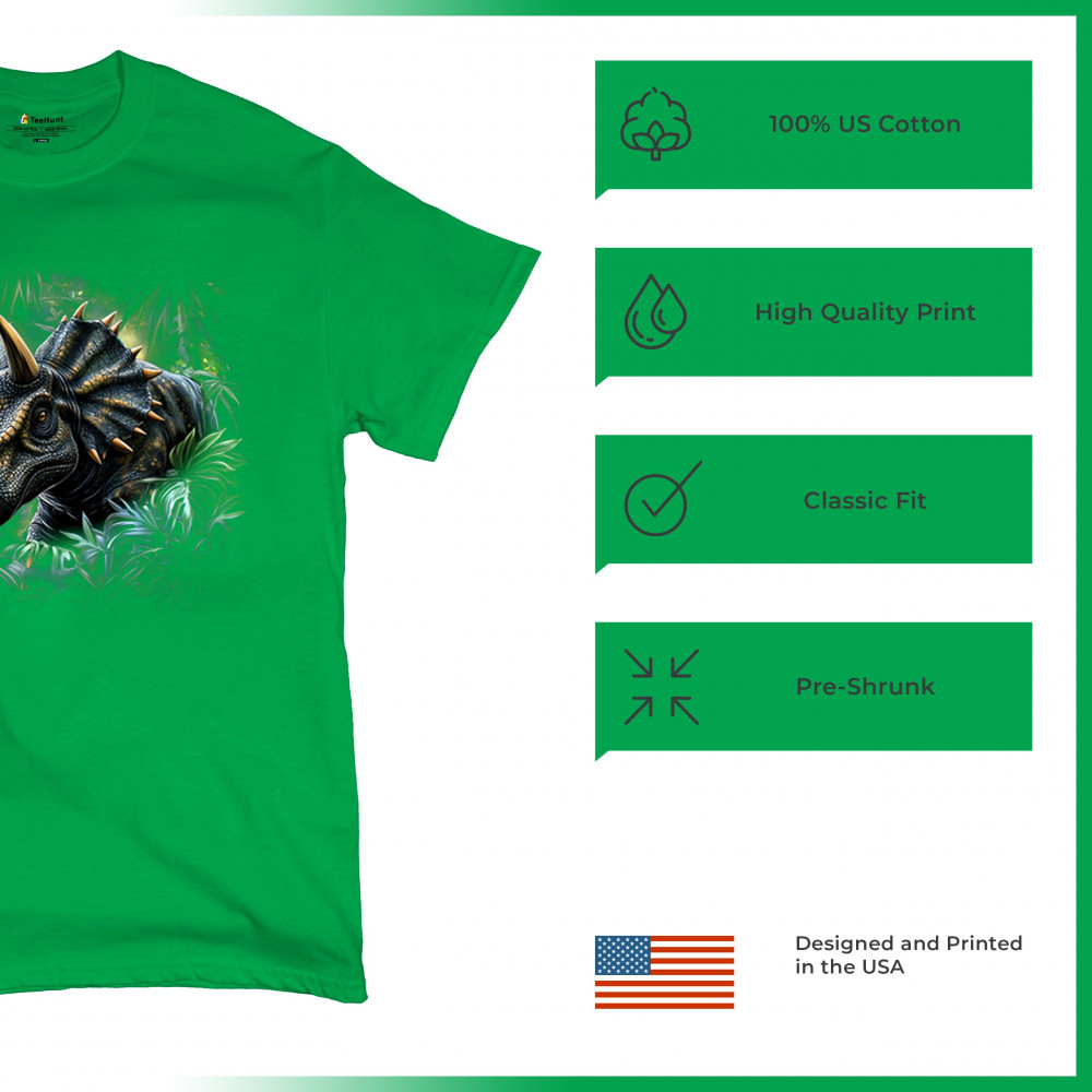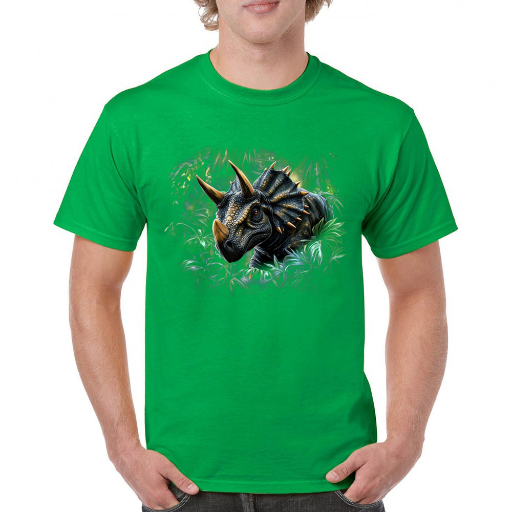 Charge into the past with this vivid triceratops design. Featuring a hyper-detailed horned dinosaur surrounded by jungle leaves, this design is perfect for dino lovers, fossil enthusiasts, and anyone fascinated by prehistoric beasts. Great for Jurassic parties, safari parks, or museum visits, it brings ancient strength to life.