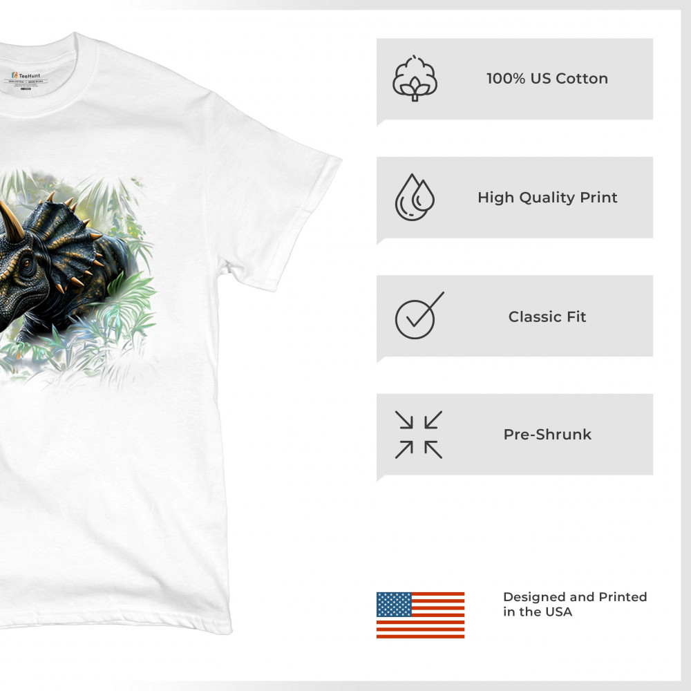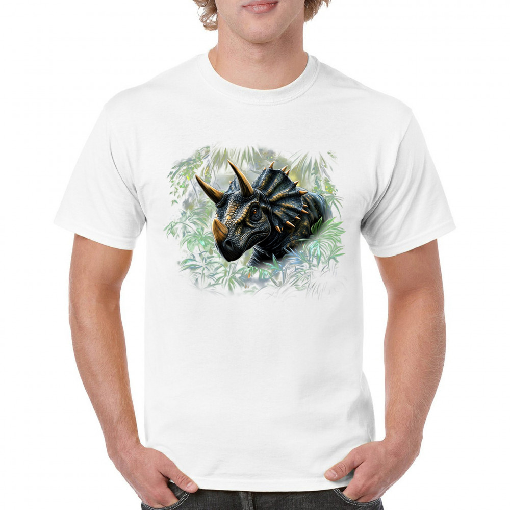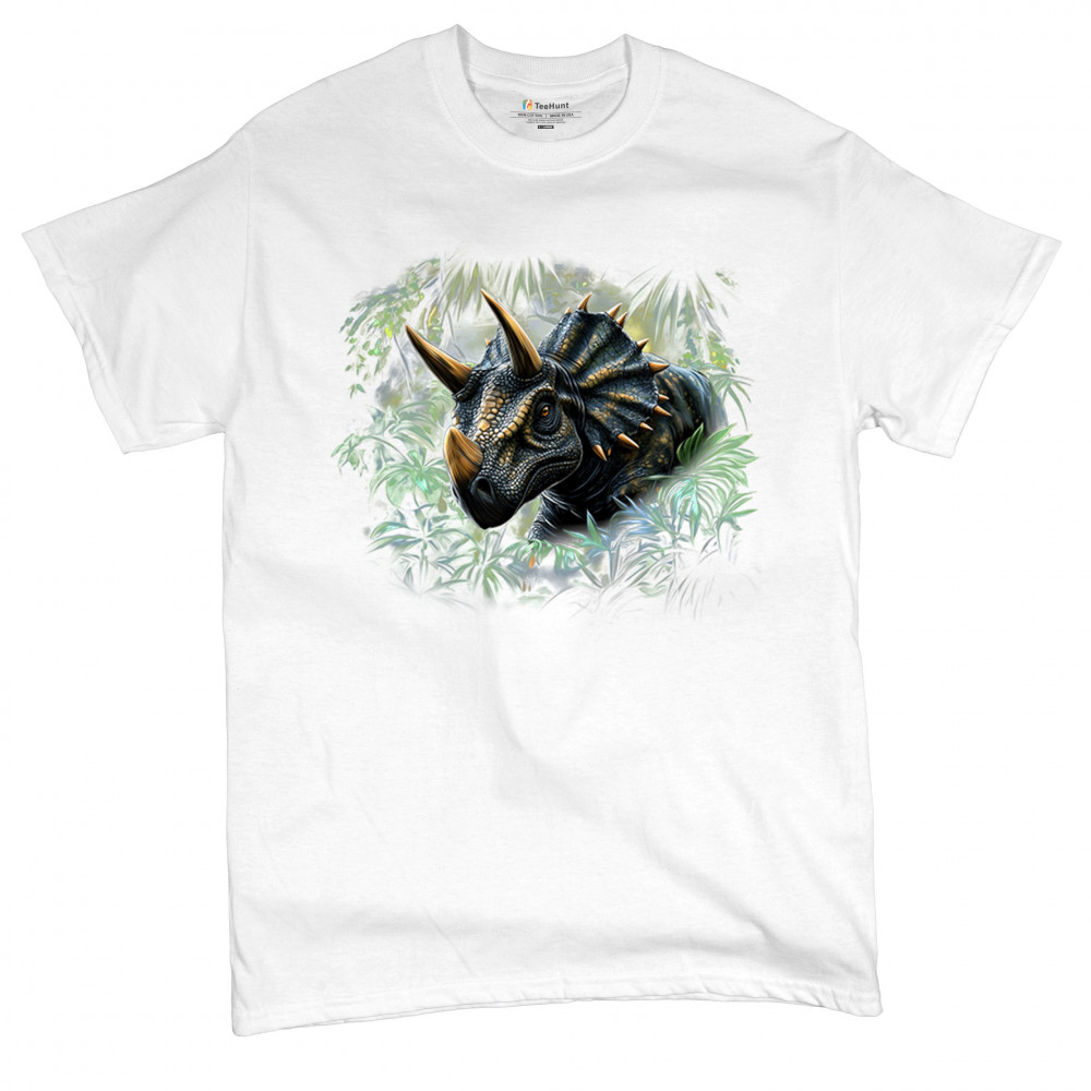 Charge into the past with this vivid triceratops design. Featuring a hyper-detailed horned dinosaur surrounded by jungle leaves, this design is perfect for dino lovers, fossil enthusiasts, and anyone fascinated by prehistoric beasts. Great for Jurassic parties, safari parks, or museum visits, it brings ancient strength to life.