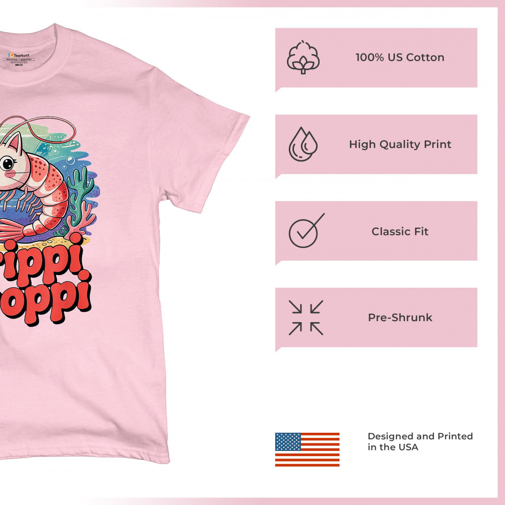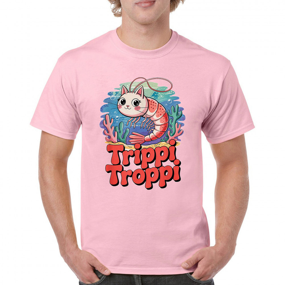 Dive deep into absurdity with Trippi Troppi—a surreal shrimp-cat fusion straight out of Italian Brainrot territory. This design captures cursed animal chaos, weirdcore visuals, TikTok meme culture, and underwater fever dream aesthetics. Made for Gen Z humor addicts, ocean meme fans, and ironic fashion lovers alike.