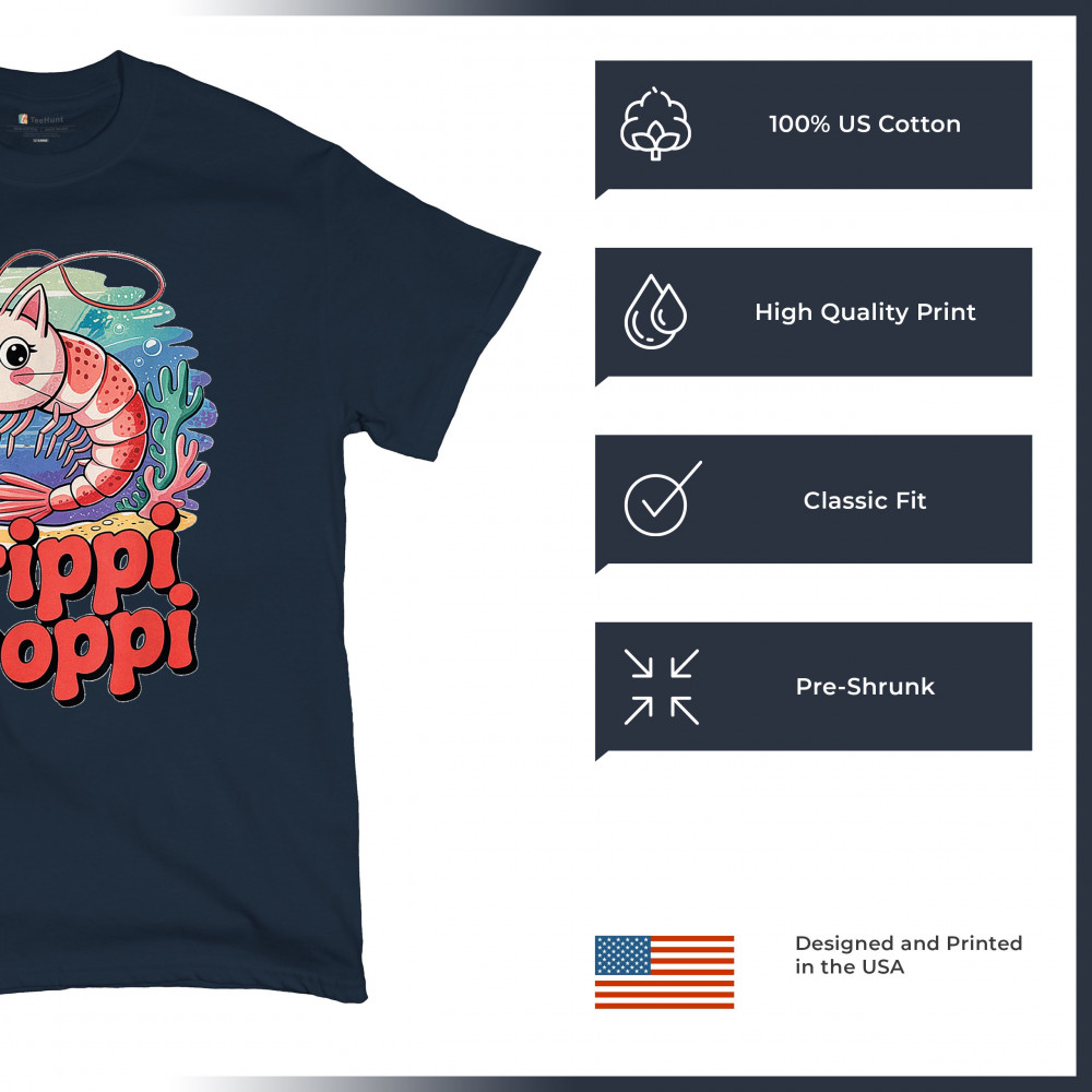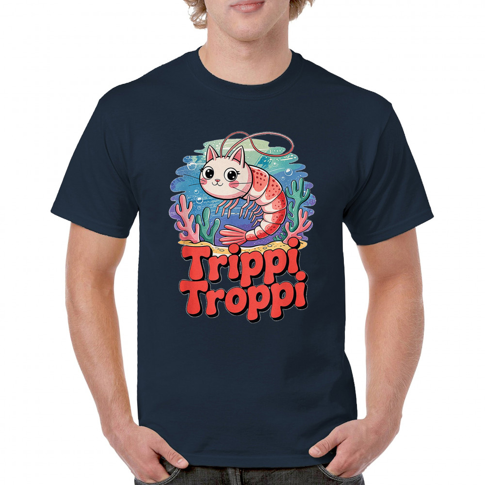 Dive deep into absurdity with Trippi Troppi—a surreal shrimp-cat fusion straight out of Italian Brainrot territory. This design captures cursed animal chaos, weirdcore visuals, TikTok meme culture, and underwater fever dream aesthetics. Made for Gen Z humor addicts, ocean meme fans, and ironic fashion lovers alike.