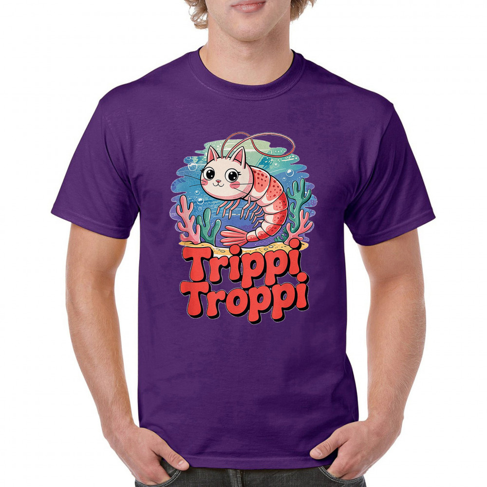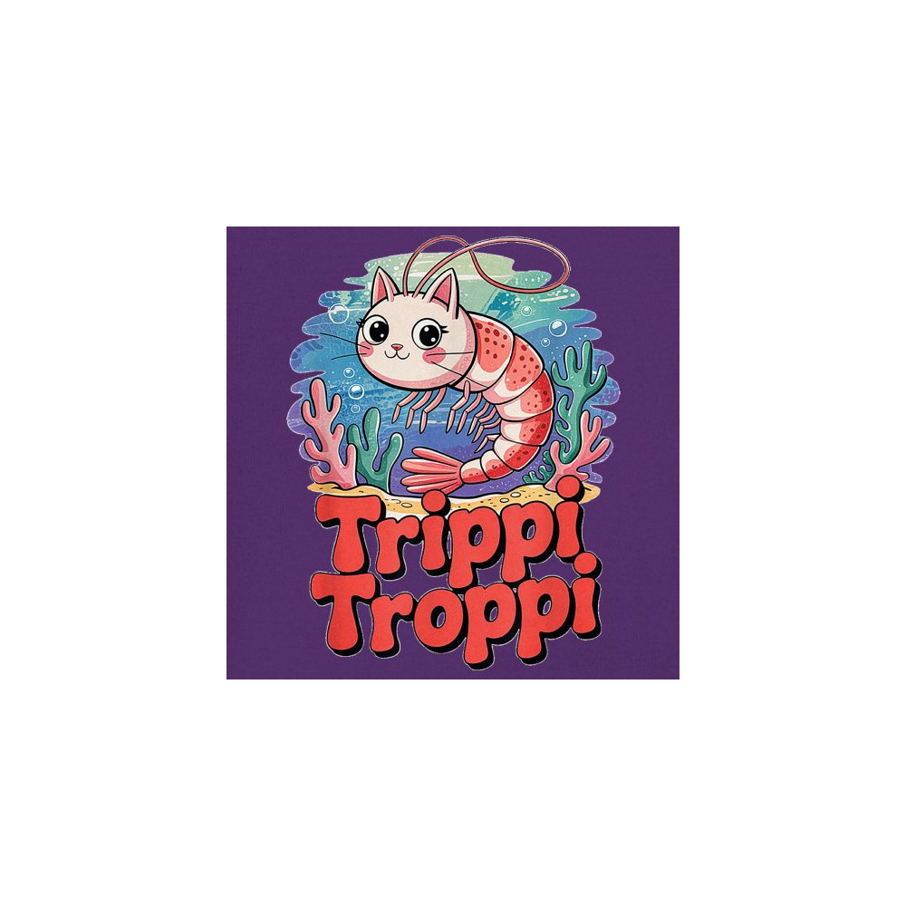 Dive deep into absurdity with Trippi Troppi—a surreal shrimp-cat fusion straight out of Italian Brainrot territory. This design captures cursed animal chaos, weirdcore visuals, TikTok meme culture, and underwater fever dream aesthetics. Made for Gen Z humor addicts, ocean meme fans, and ironic fashion lovers alike.