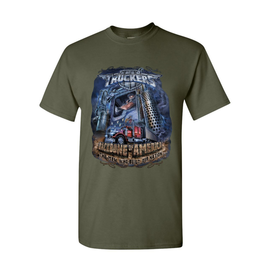 TRUCKERS - BACKBONE OF AMERICA truckers backbone of america t-shirt truck driver hauler diesel mens tee shirt military green