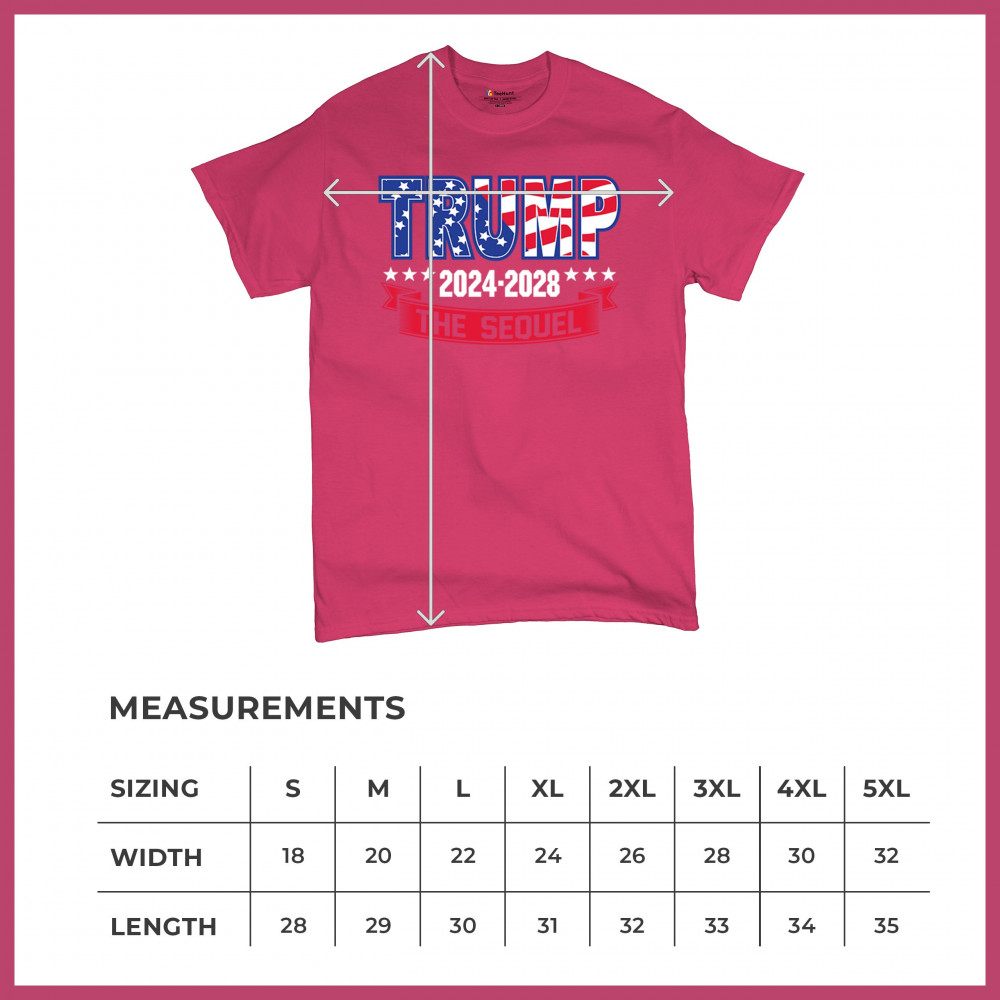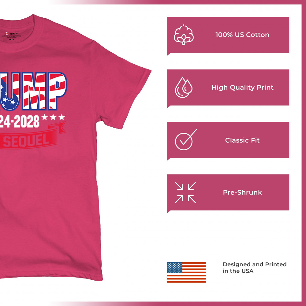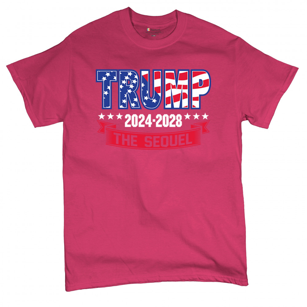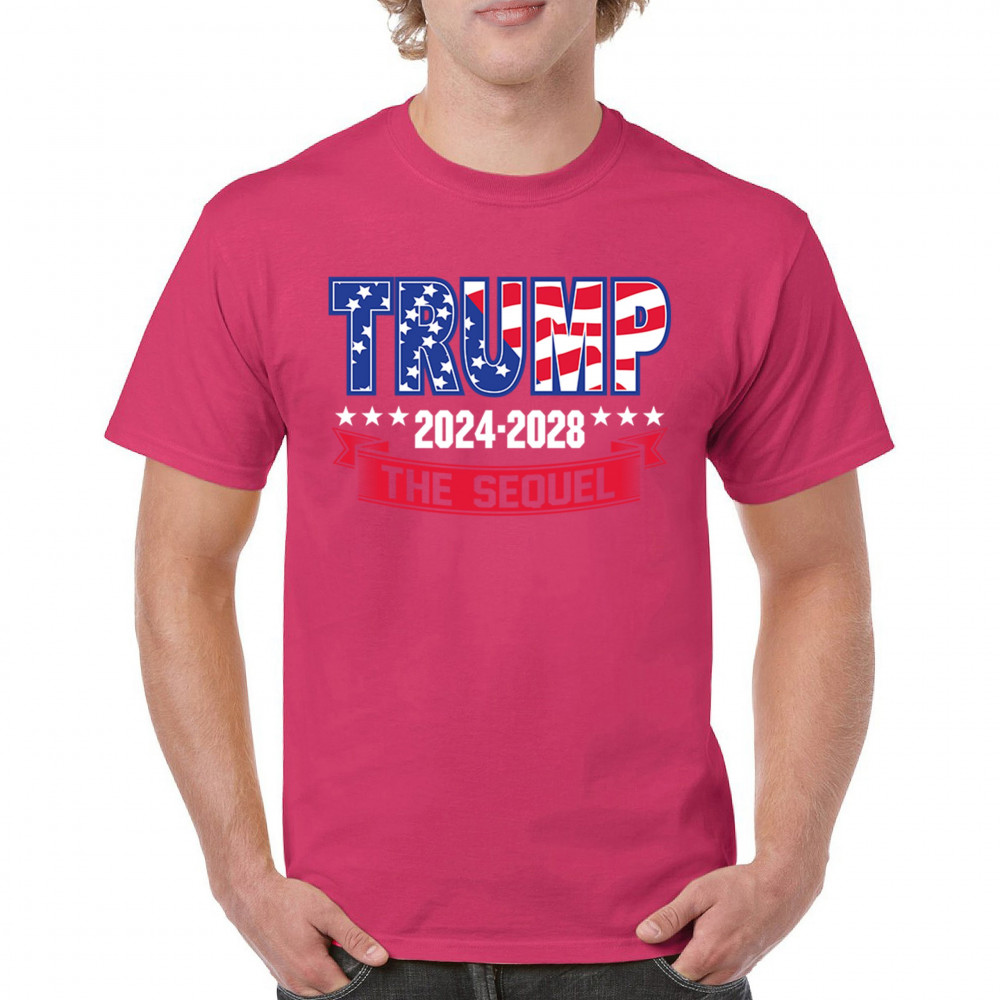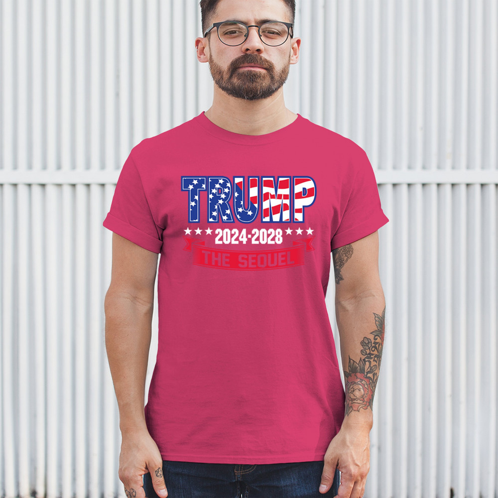 Stand with Trump for 2024-2028 in "The Sequel" design, celebrating America First, conservative values, and 4 more years of patriotic vision.