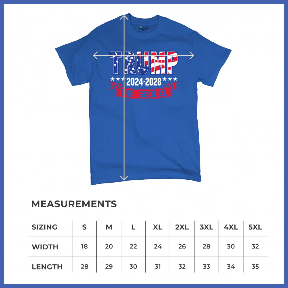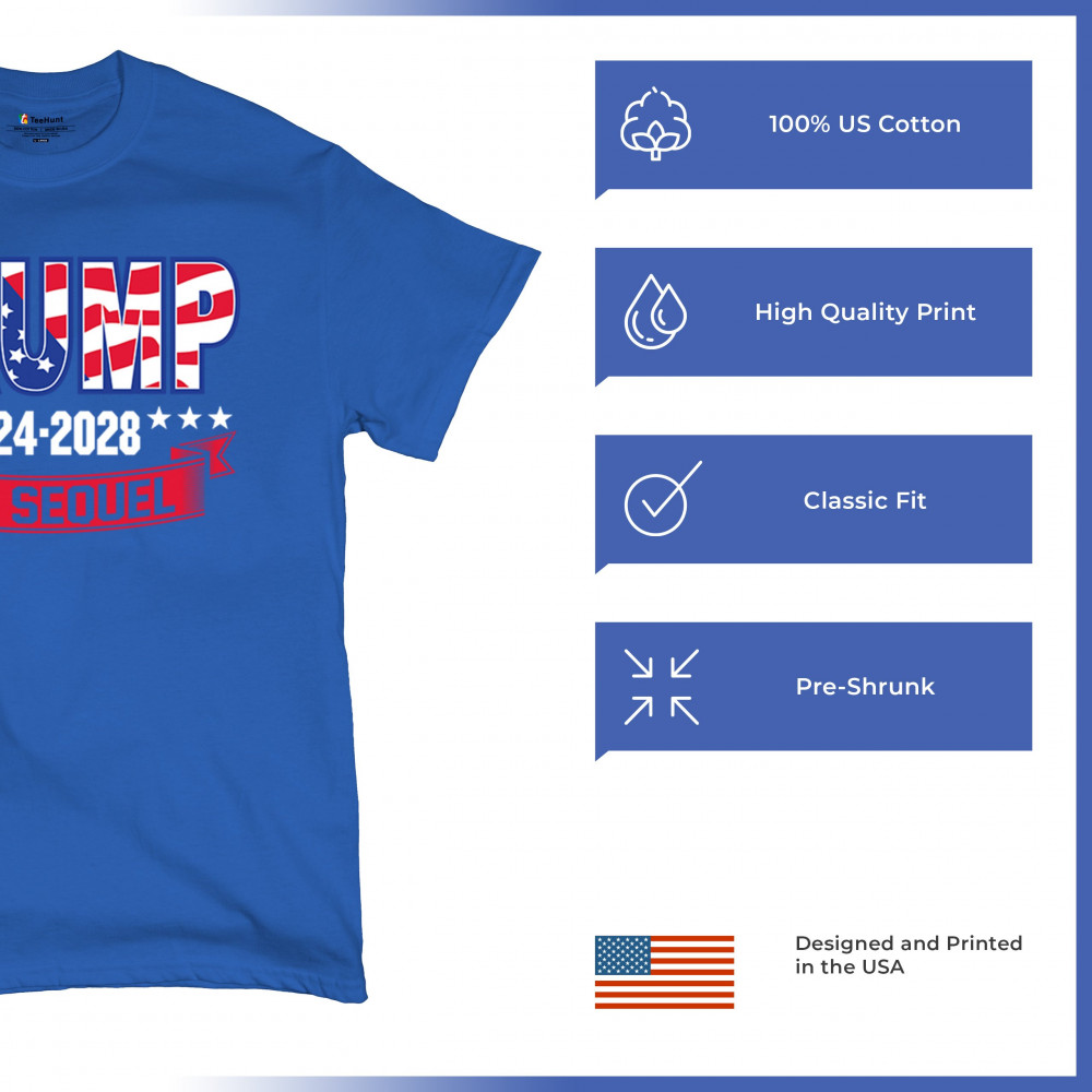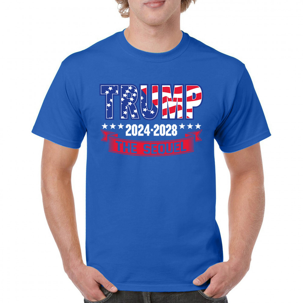 Stand with Trump for 2024-2028 in "The Sequel" design, celebrating America First, conservative values, and 4 more years of patriotic vision.