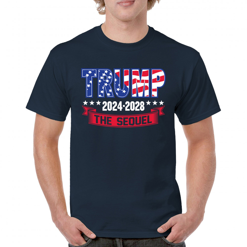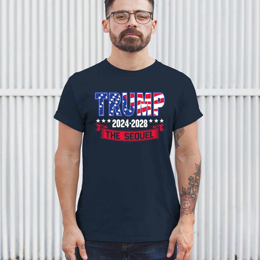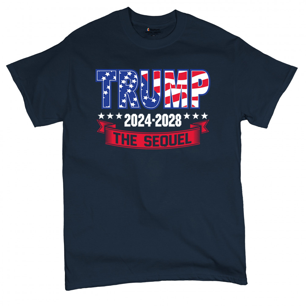 Stand with Trump for 2024-2028 in "The Sequel" design, celebrating America First, conservative values, and 4 more years of patriotic vision.