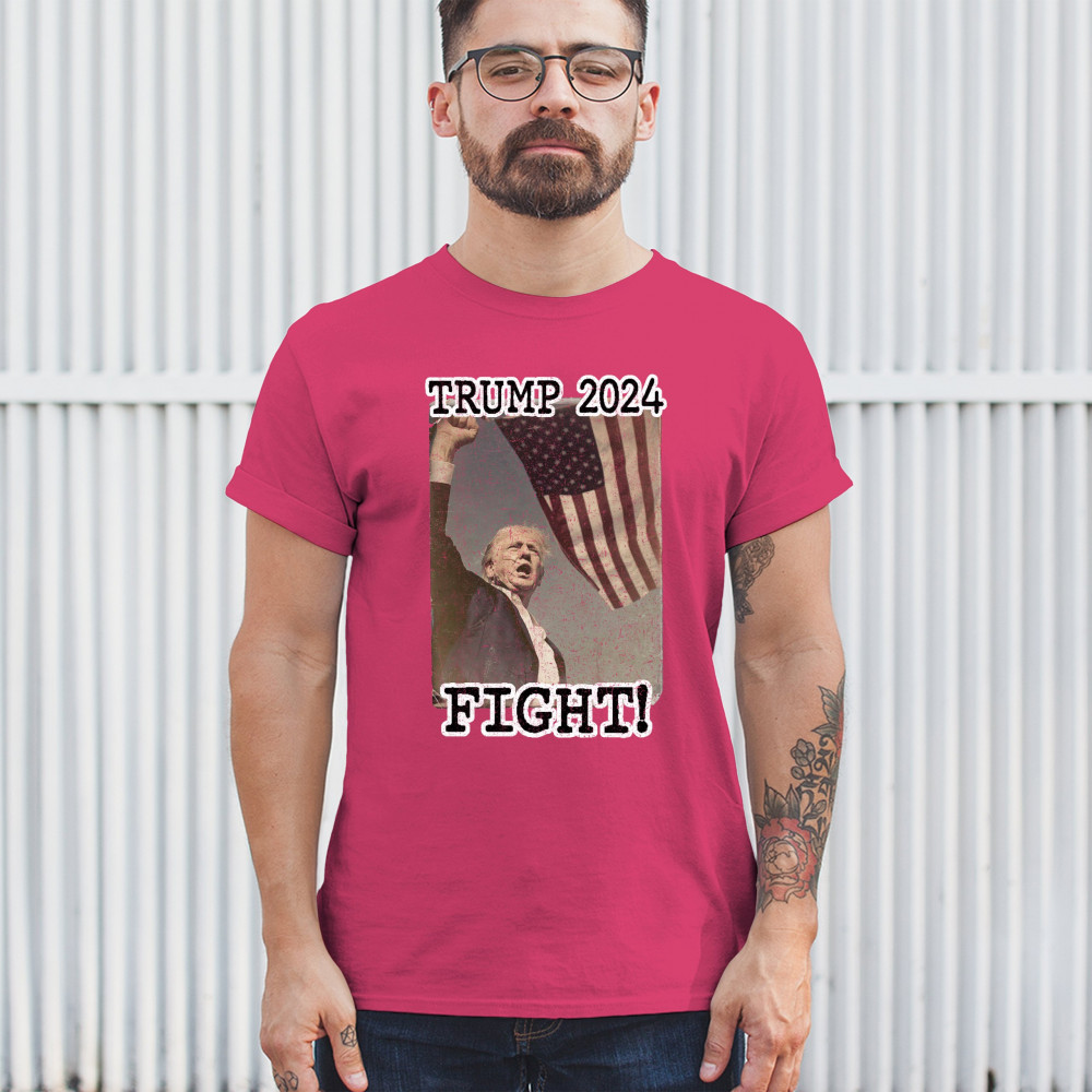Step into the political arena with this bold and impactful design featuring Donald Trump with an American flag. Ideal for rallies, political gatherings, and patriotic events, this design is perfect for showing your conservative pride and support for the America first movement. The powerful message and striking imagery make it a standout piece for any Trump supporter. Made with premium materials, this design ensures durability and comfort. Wear it proudly to showcase your belief in conservative values and the spirit of never surrendering.