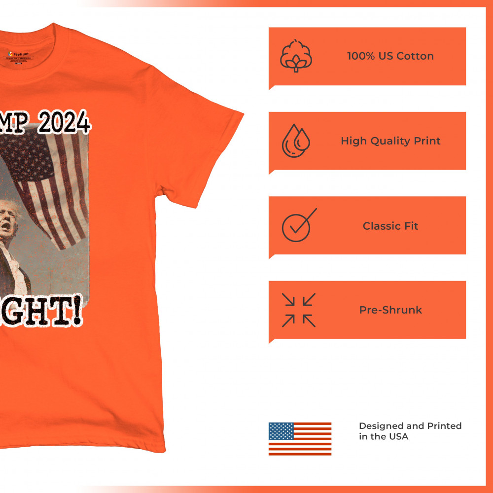 Bold Trump design with American flag, perfect for rallies and patriotic events. Show your conservative pride and support for the America first movement.
