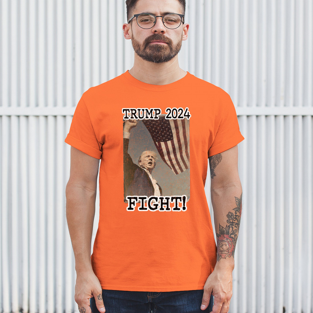 Step into the political arena with this bold and impactful design featuring Donald Trump with an American flag. Ideal for rallies, political gatherings, and patriotic events, this design is perfect for showing your conservative pride and support for the America first movement. The powerful message and striking imagery make it a standout piece for any Trump supporter. Made with premium materials, this design ensures durability and comfort. Wear it proudly to showcase your belief in conservative values and the spirit of never surrendering.