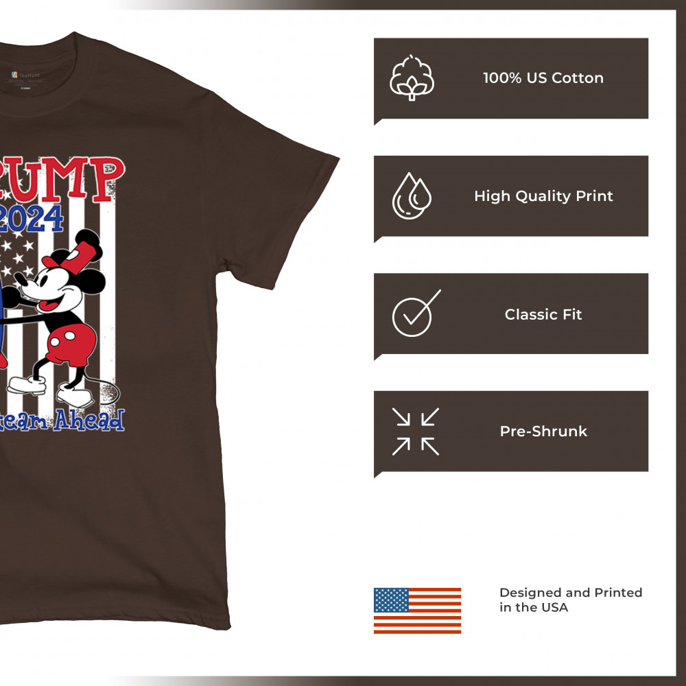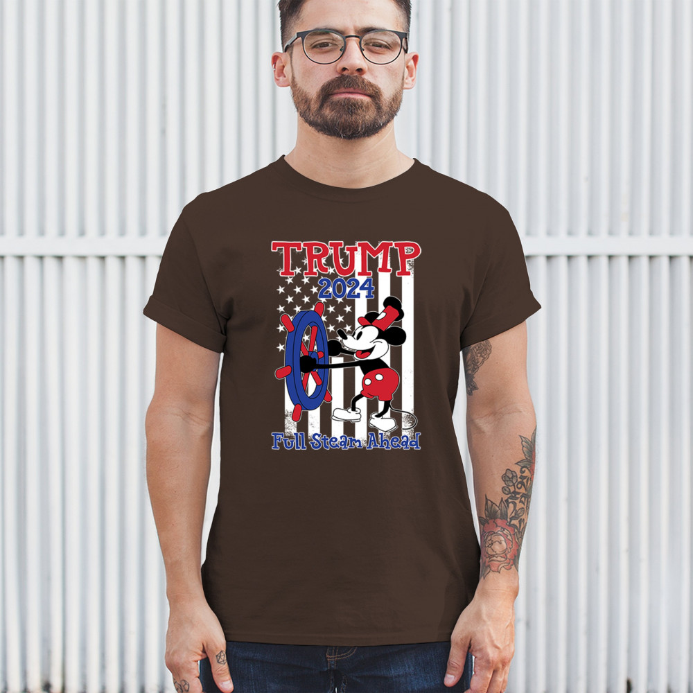 Show your support for Trump with the "Full Steam Ahead" design, symbolizing conservative values and America's resilience. Perfect for rallies and daily wear.