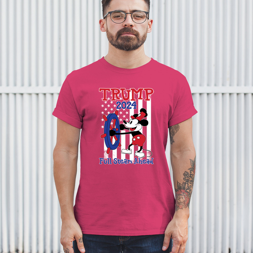 Show your support for Trump with the "Full Steam Ahead" design, symbolizing conservative values and America's resilience. Perfect for rallies and daily wear.