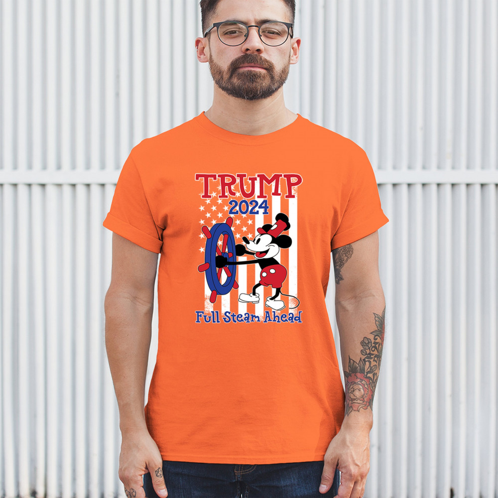 Show your support for Trump with the "Full Steam Ahead" design, symbolizing conservative values and America's resilience. Perfect for rallies and daily wear.