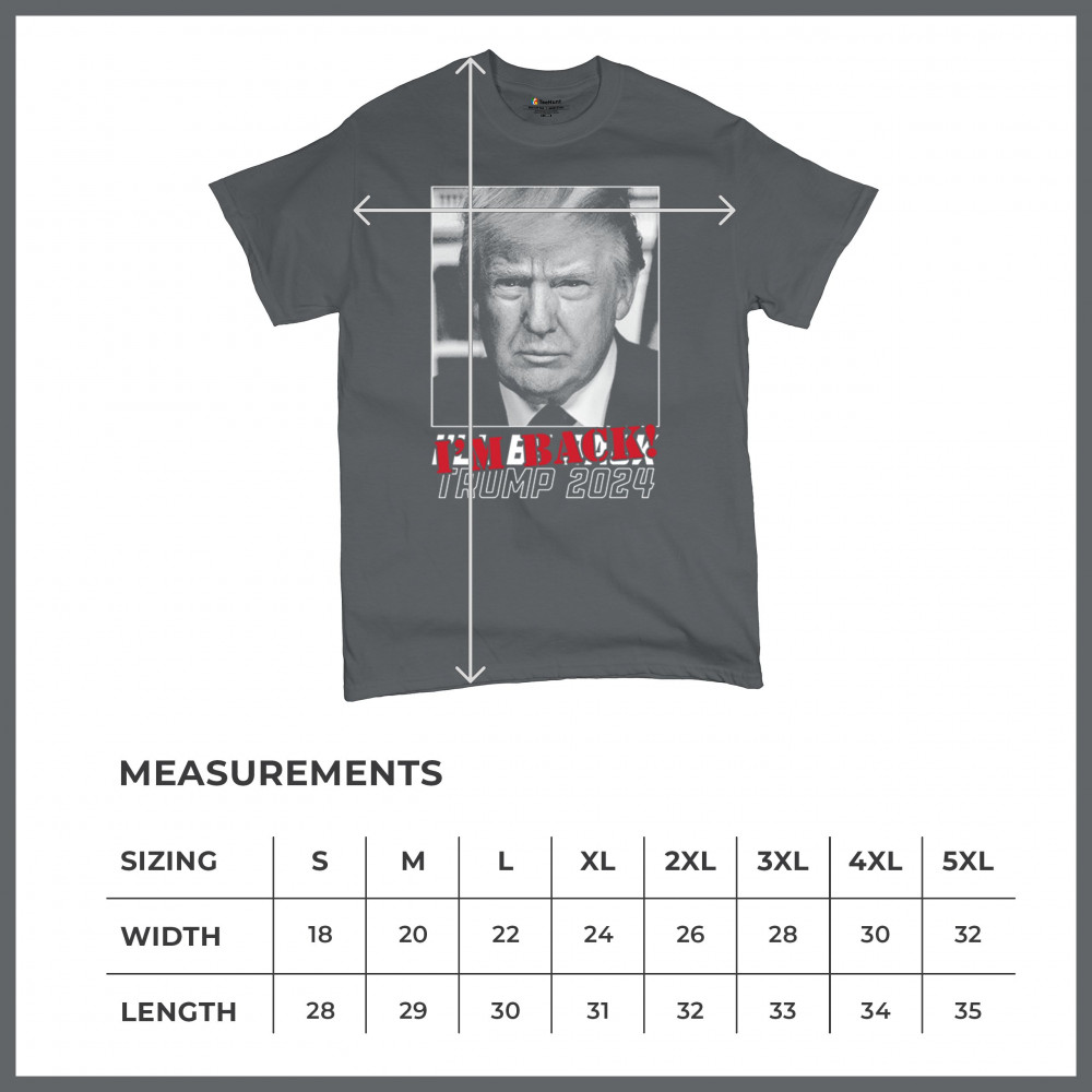 Show your support for Trump 2024 with this "I'm Back!" design, perfect for conservatives, Republicans, and patriotic Americans who believe in the Red Wave.