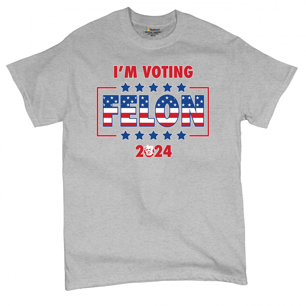 Stand out and express your political beliefs with our "I'm Voting Felon 2024" design. This bold and eye-catching design is perfect for conservative patriots and Trump supporters. Featuring a vibrant American flag motif, it’s ideal for rallies, political events, and daily wear. Show your commitment to America First and your defiance against opposition. This design is a perfect gift for like-minded friends and family who support the same values and are proud to show it.