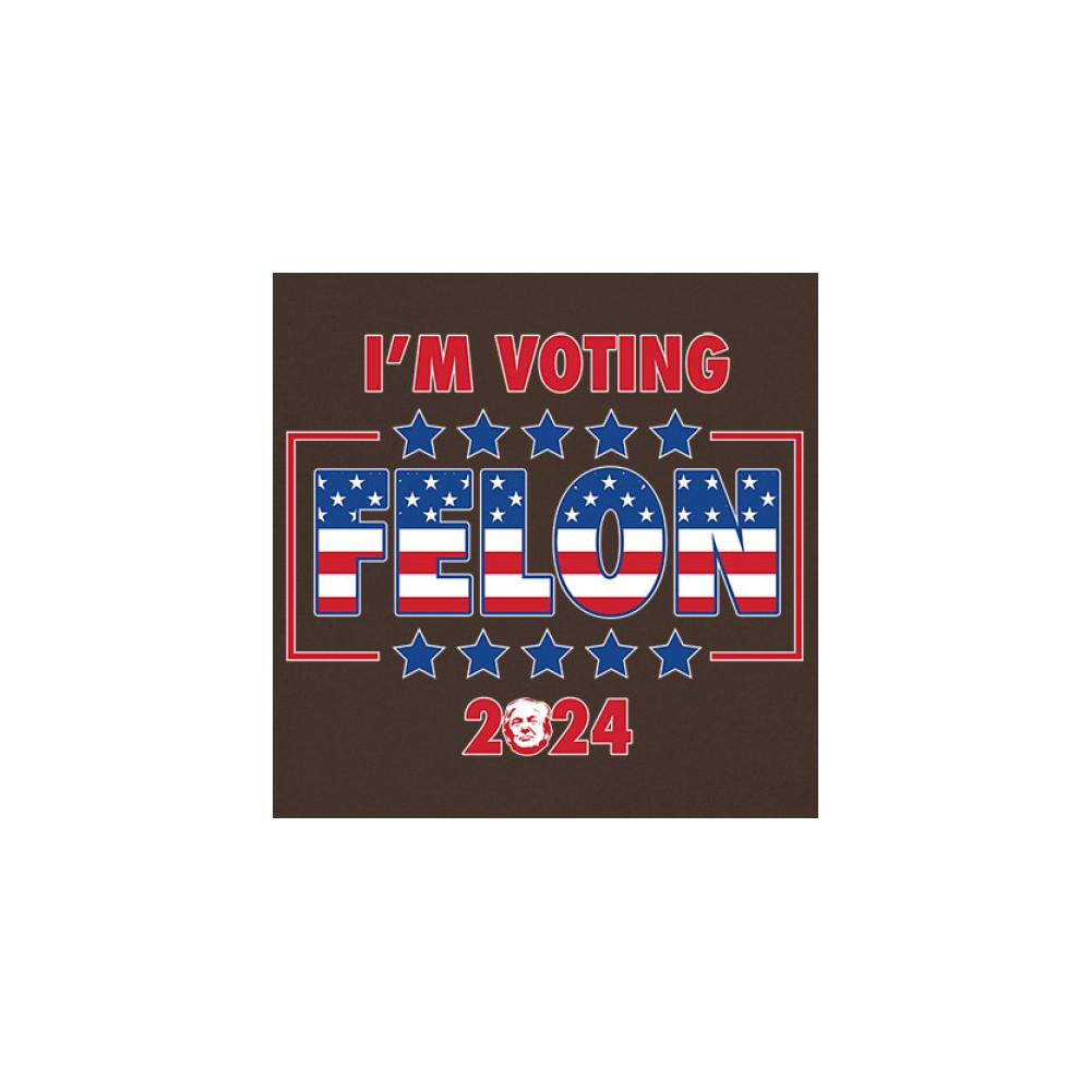 Stand out and express your political beliefs with our "I'm Voting Felon 2024" design. This bold and eye-catching design is perfect for conservative patriots and Trump supporters. Featuring a vibrant American flag motif, it’s ideal for rallies, political events, and daily wear. Show your commitment to America First and your defiance against opposition. This design is a perfect gift for like-minded friends and family who support the same values and are proud to show it.