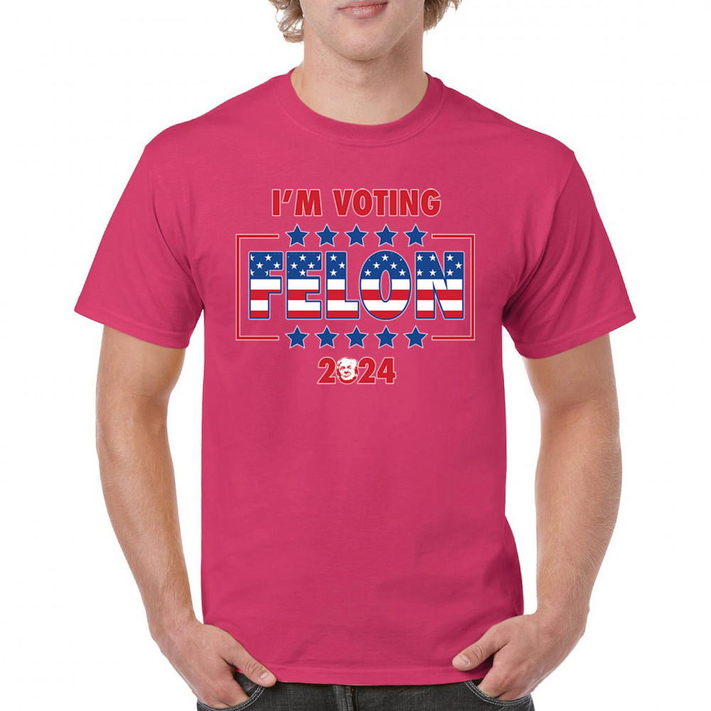 Stand out and express your political beliefs with our "I'm Voting Felon 2024" design. This bold and eye-catching design is perfect for conservative patriots and Trump supporters. Featuring a vibrant American flag motif, it’s ideal for rallies, political events, and daily wear. Show your commitment to America First and your defiance against opposition. This design is a perfect gift for like-minded friends and family who support the same values and are proud to show it.