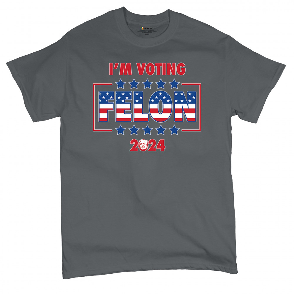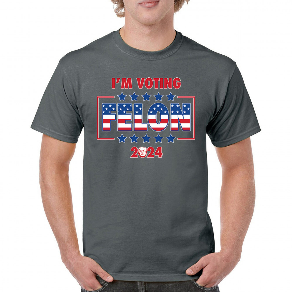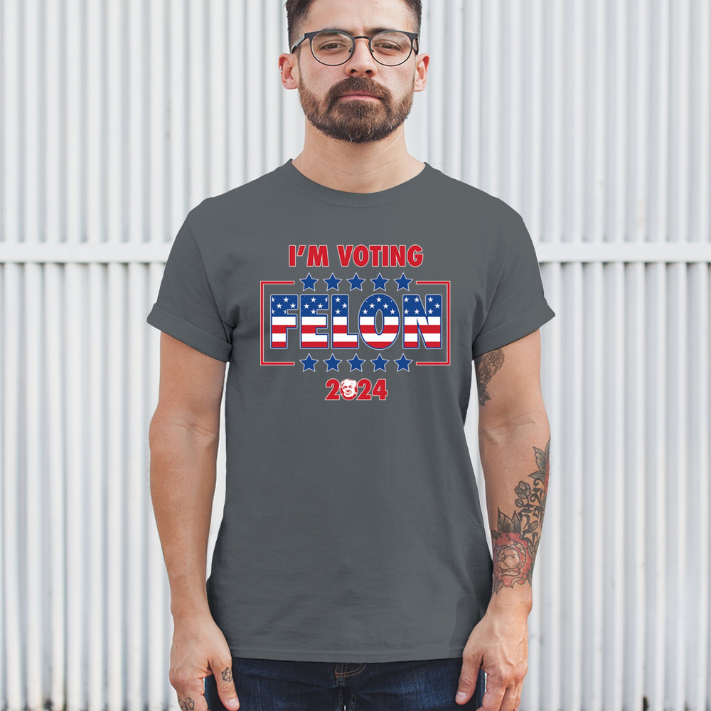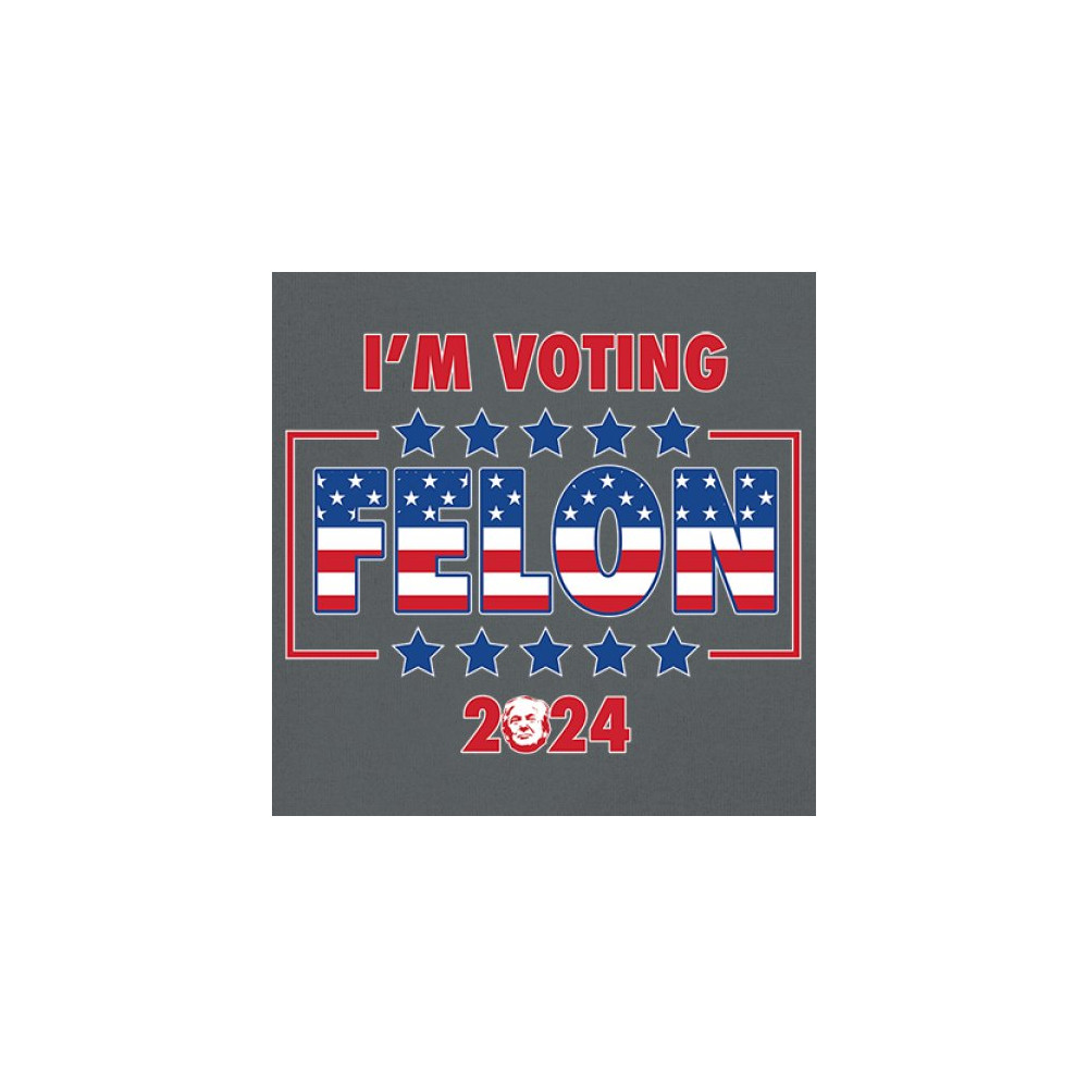 Stand out and express your political beliefs with our "I'm Voting Felon 2024" design. This bold and eye-catching design is perfect for conservative patriots and Trump supporters. Featuring a vibrant American flag motif, it’s ideal for rallies, political events, and daily wear. Show your commitment to America First and your defiance against opposition. This design is a perfect gift for like-minded friends and family who support the same values and are proud to show it.