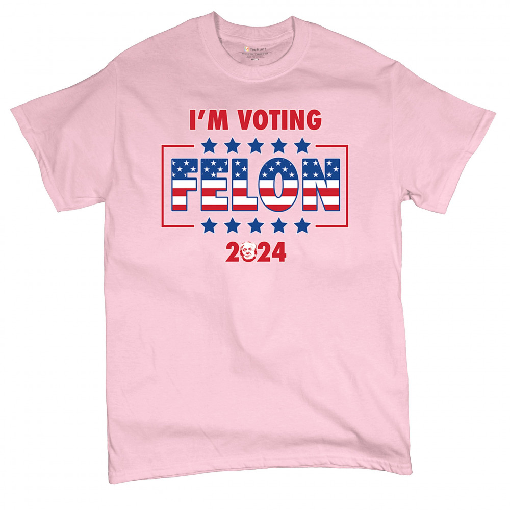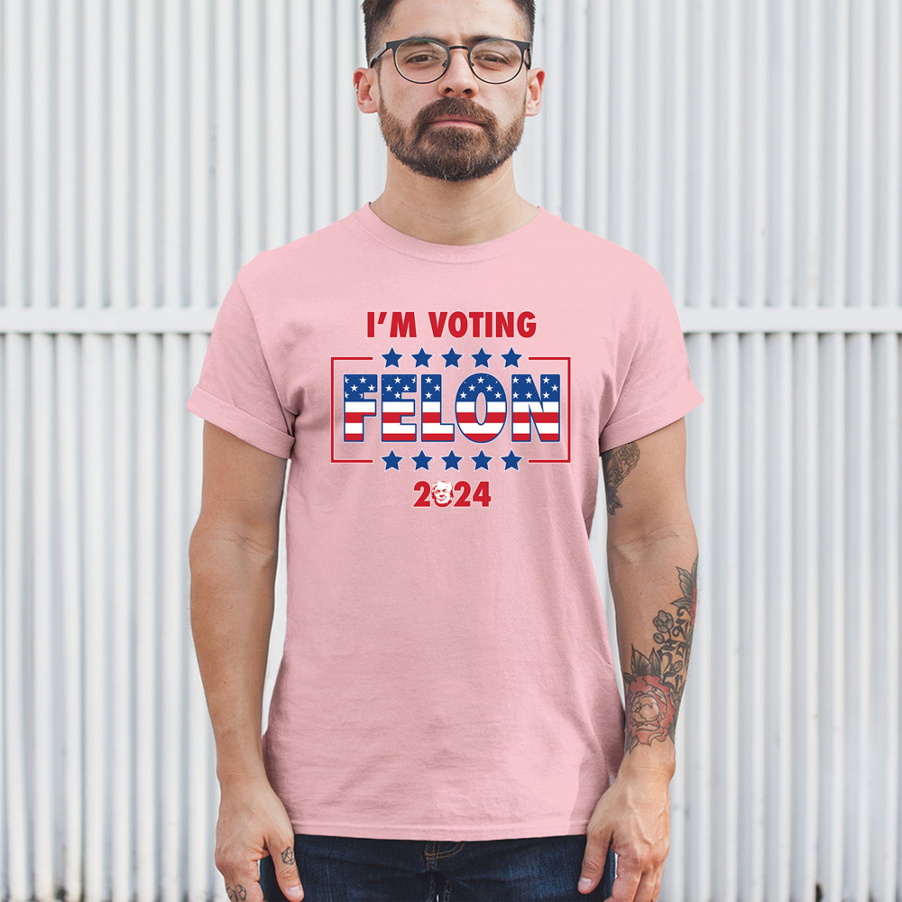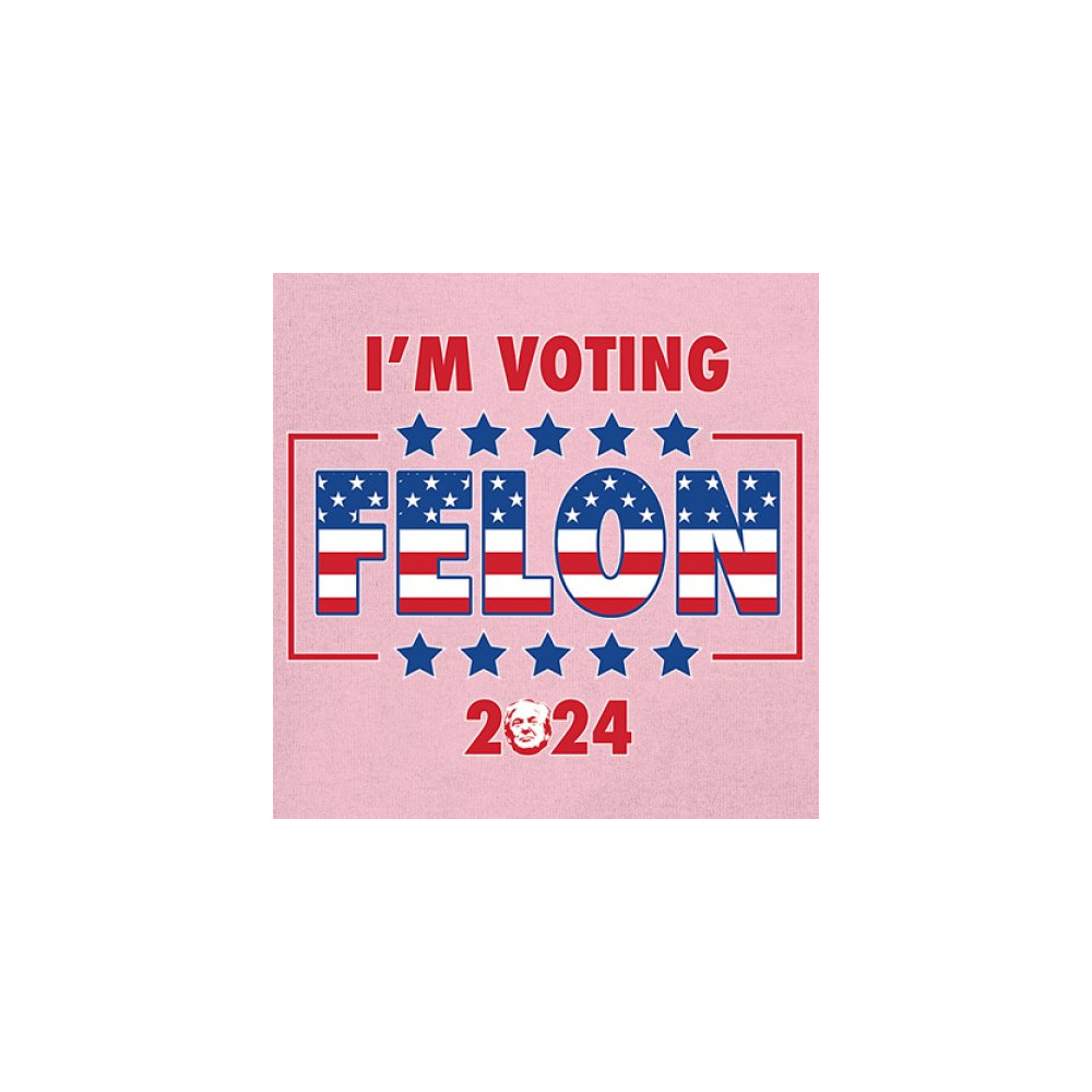 Stand out and express your political beliefs with our "I'm Voting Felon 2024" design. This bold and eye-catching design is perfect for conservative patriots and Trump supporters. Featuring a vibrant American flag motif, it’s ideal for rallies, political events, and daily wear. Show your commitment to America First and your defiance against opposition. This design is a perfect gift for like-minded friends and family who support the same values and are proud to show it.