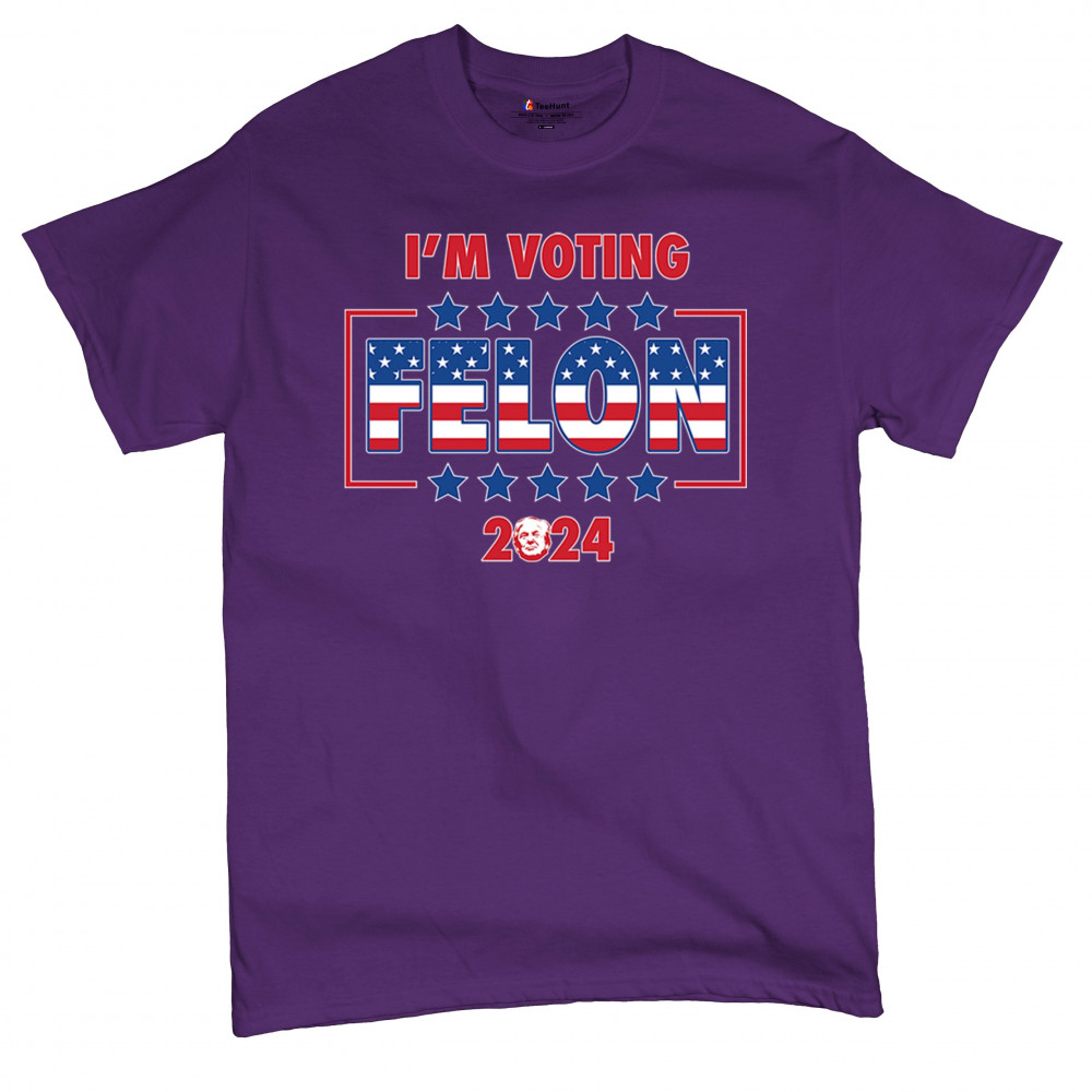 Show your support with the "I'm Voting Felon 2024" design, perfect for conservative patriots and Trump supporters. Featuring an American flag motif.