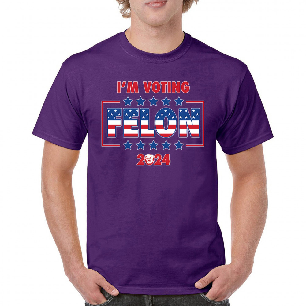 Stand out and express your political beliefs with our "I'm Voting Felon 2024" design. This bold and eye-catching design is perfect for conservative patriots and Trump supporters. Featuring a vibrant American flag motif, it’s ideal for rallies, political events, and daily wear. Show your commitment to America First and your defiance against opposition. This design is a perfect gift for like-minded friends and family who support the same values and are proud to show it.