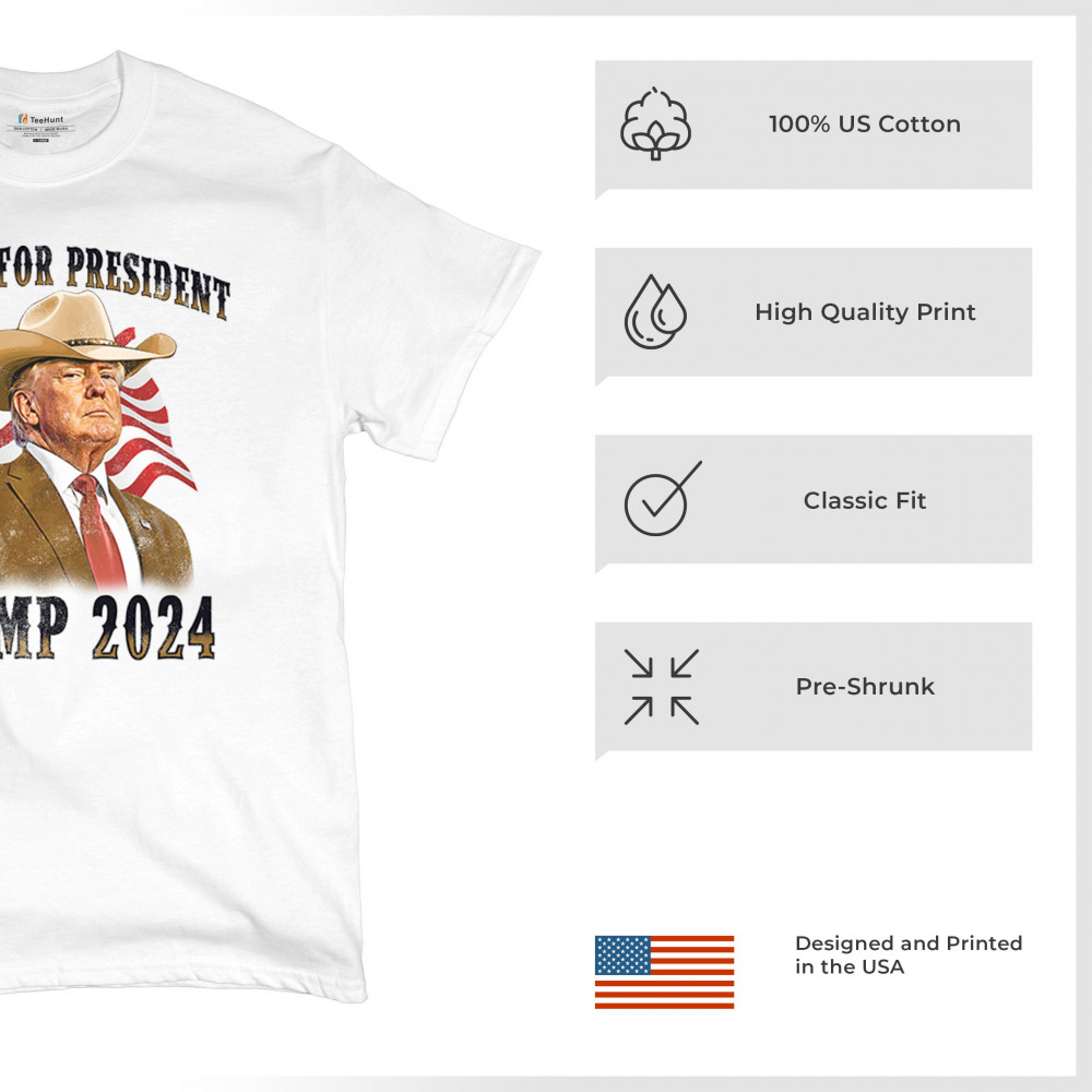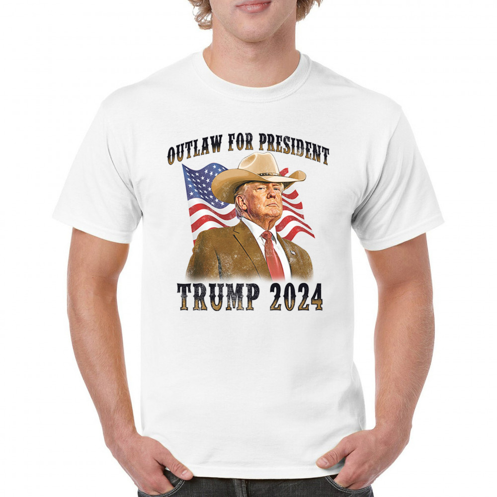 Support Trump with our "Outlaw for President" design. Featuring Trump in a cowboy hat, this piece symbolizes strength amidst political challenges. Join the fight for conservative values!