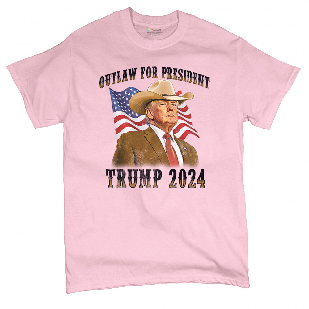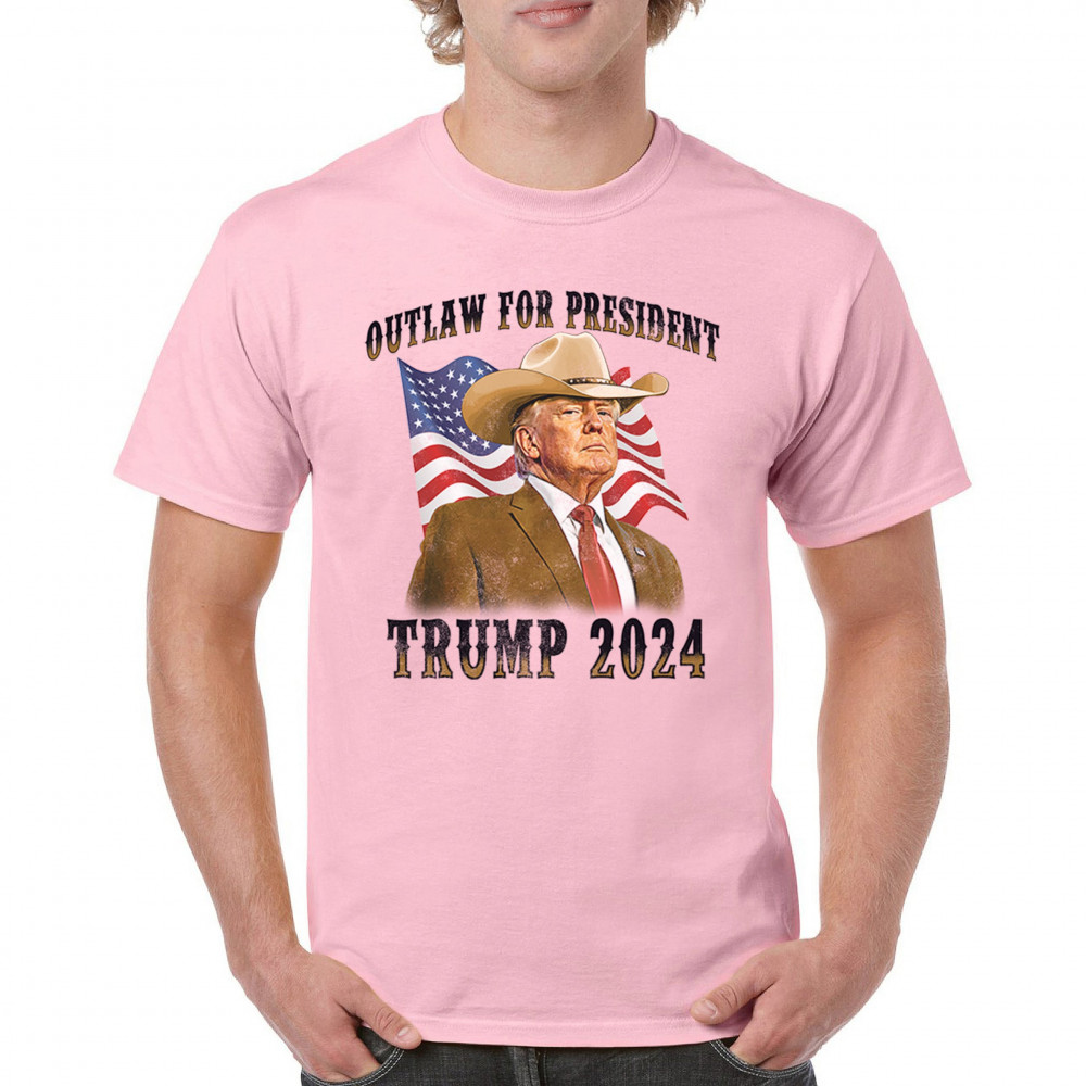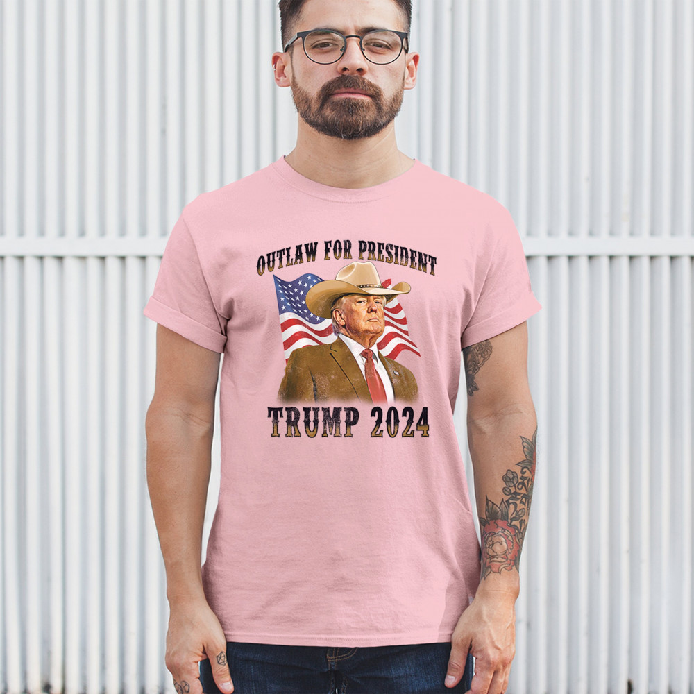 Support Trump with our "Outlaw for President" design. Featuring Trump in a cowboy hat, this piece symbolizes strength amidst political challenges. Join the fight for conservative values!