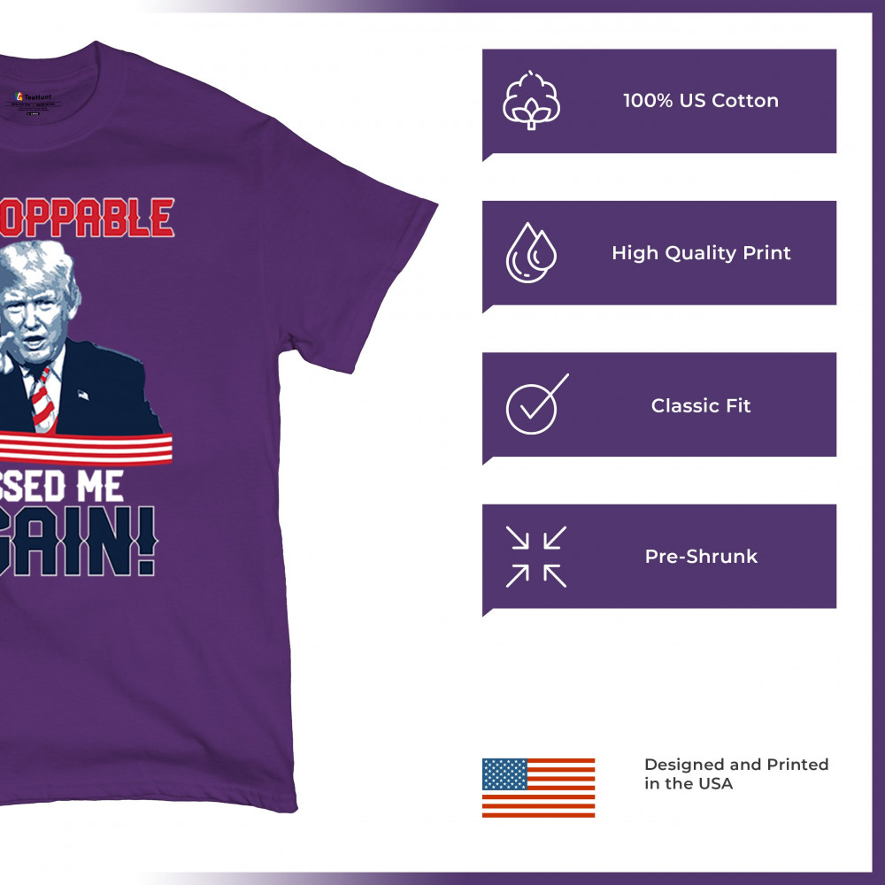 Bold and patriotic design perfect for rallies, supporters, and believers in American values and resilience. Celebrate faith, unity, and victory.