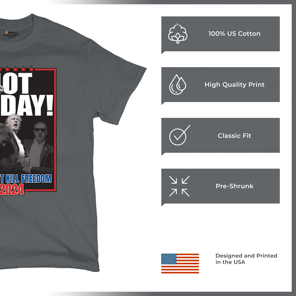 Support Trump and Vance 2024 with this bold design. Perfect for rallies, it represents conservative values and the drive for victory. Stand with America!