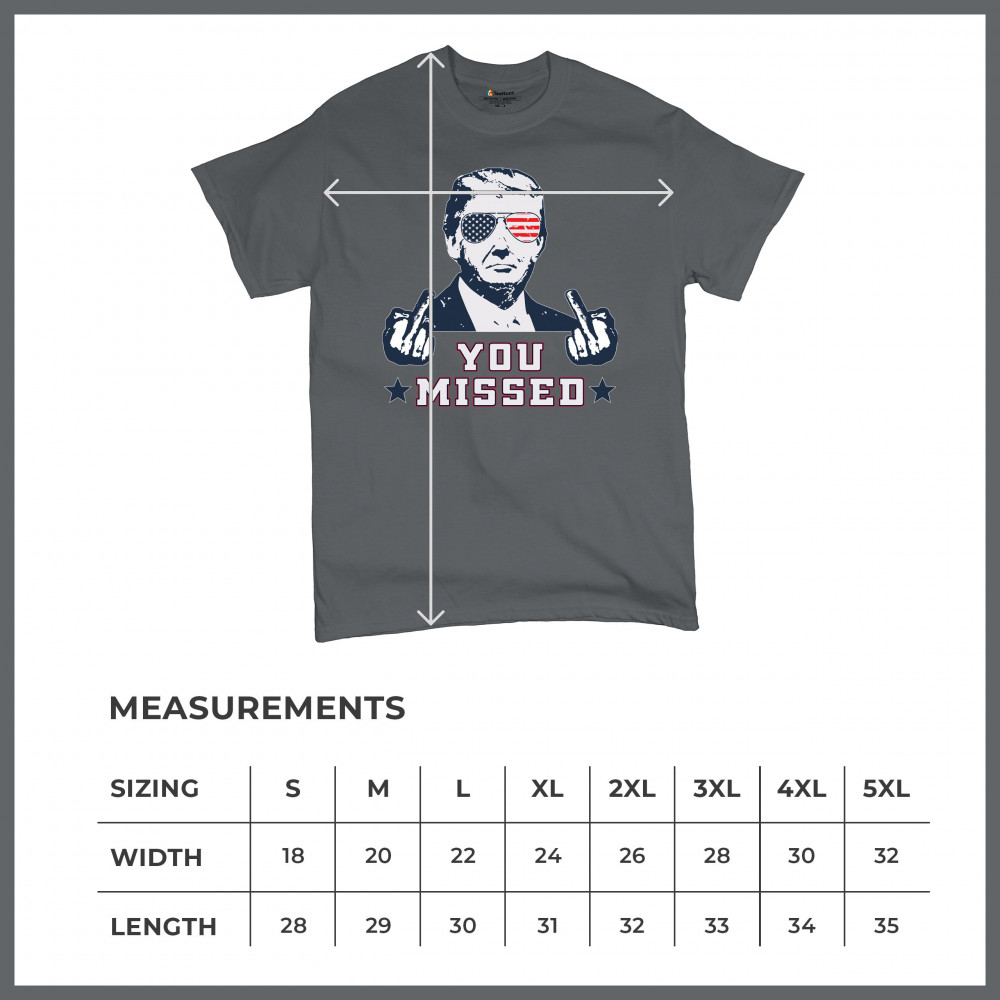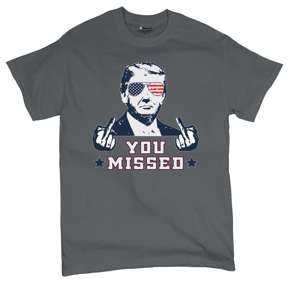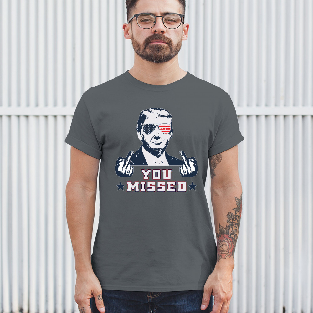 Celebrate Trump's resilience with this bold "You Missed" design. Perfect for rallies and political events. Show your unwavering support for conservative values.