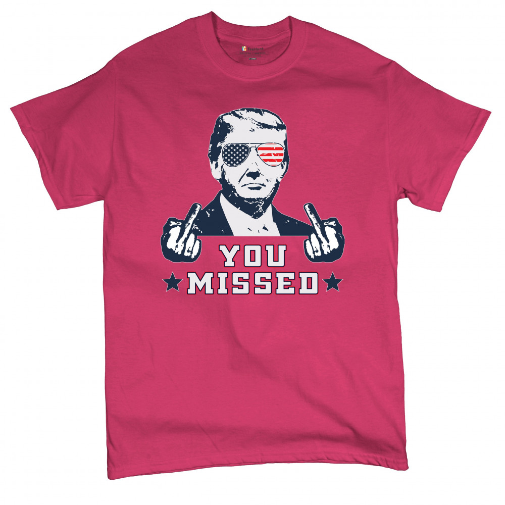 Celebrate Trump's resilience with this bold "You Missed" design. Perfect for rallies and political events. Show your unwavering support for conservative values.