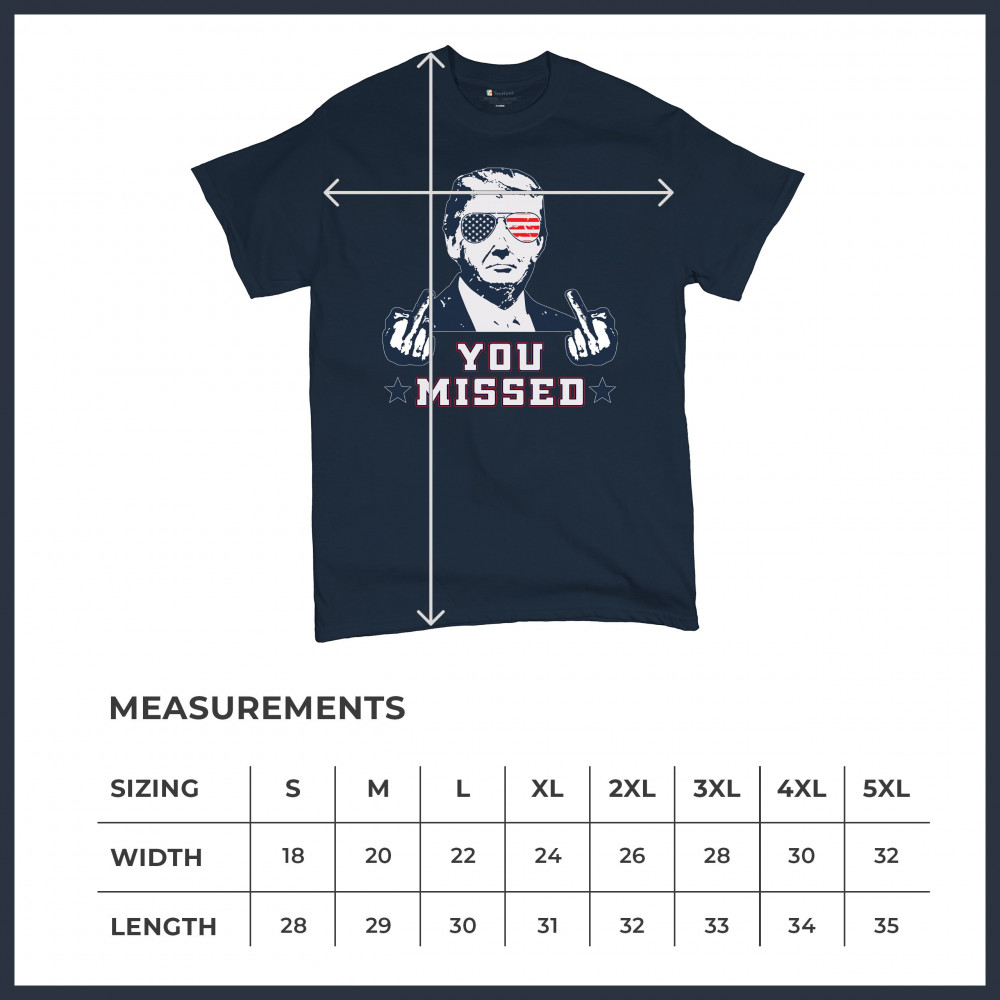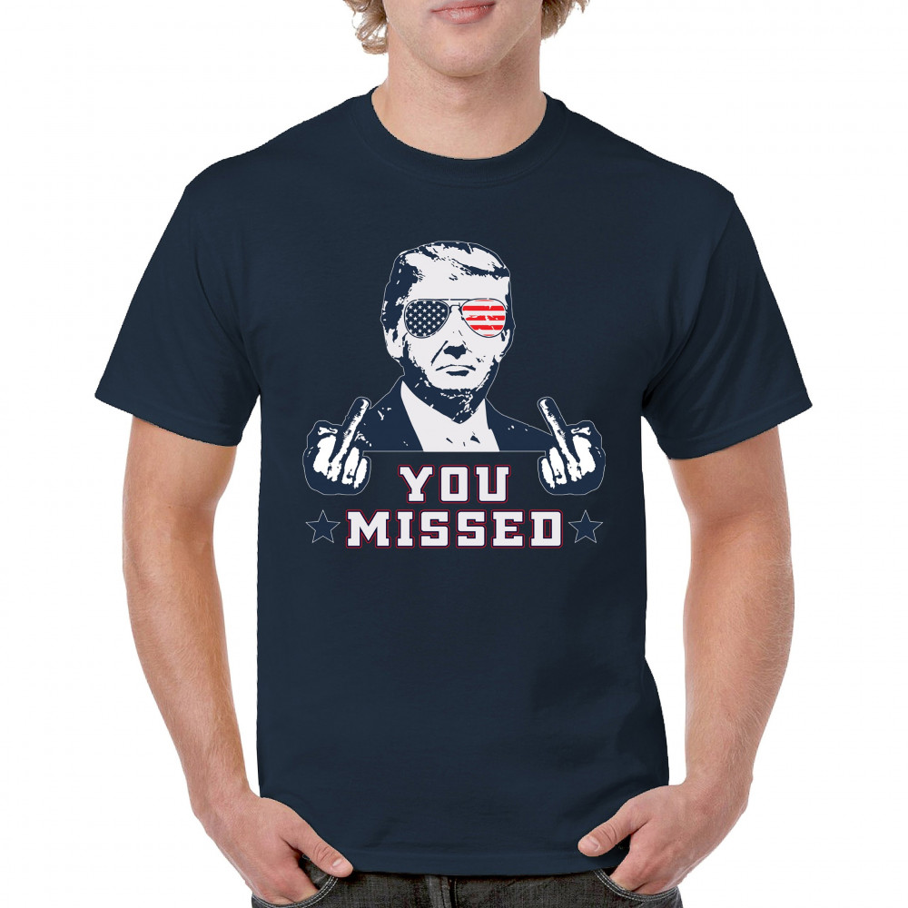 Celebrate Trump's resilience with this bold "You Missed" design. Perfect for rallies and political events. Show your unwavering support for conservative values.