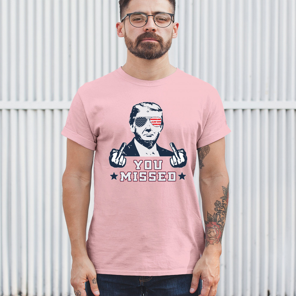 Celebrate Trump's resilience with this bold "You Missed" design. Perfect for rallies and political events. Show your unwavering support for conservative values.