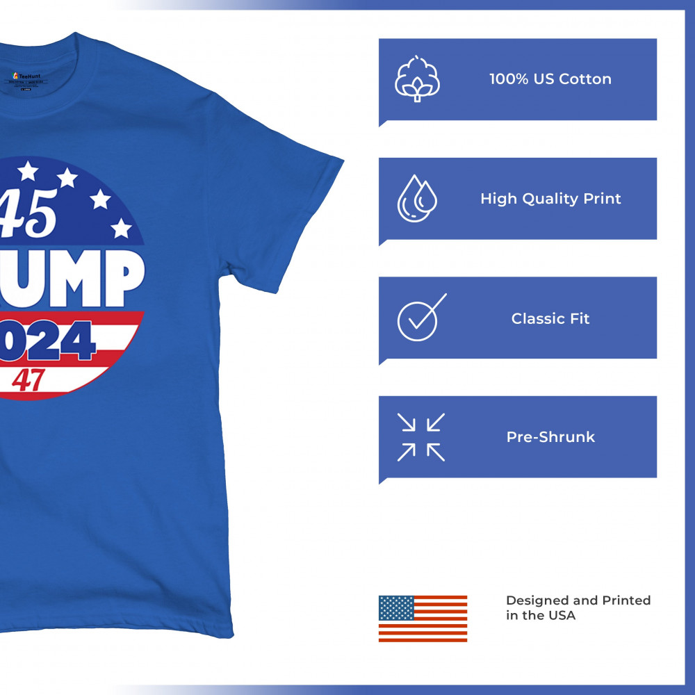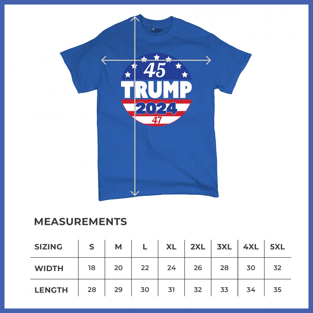 Embrace your conservative pride with this bold "45 TRUMP 2024" design. Representing America First, Republican victory, and the people’s mandate, it’s the perfect way to showcase your support for Donald J. Trump’s historic journey to the 47th presidency. Whether at rallies, political events, or casual outings, this emblem unites Trump supporters in a fight for freedom and patriotism.