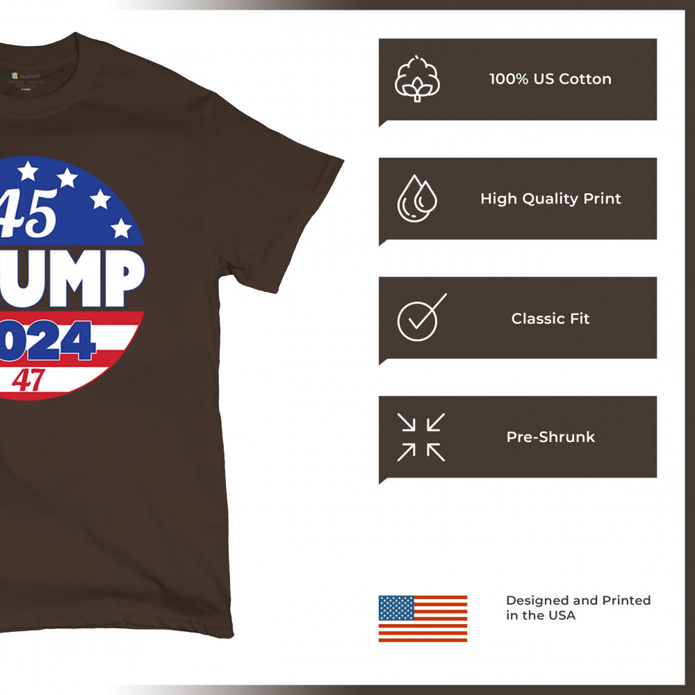 Embrace your conservative pride with this bold "45 TRUMP 2024" design. Representing America First, Republican victory, and the people’s mandate, it’s the perfect way to showcase your support for Donald J. Trump’s historic journey to the 47th presidency. Whether at rallies, political events, or casual outings, this emblem unites Trump supporters in a fight for freedom and patriotism.