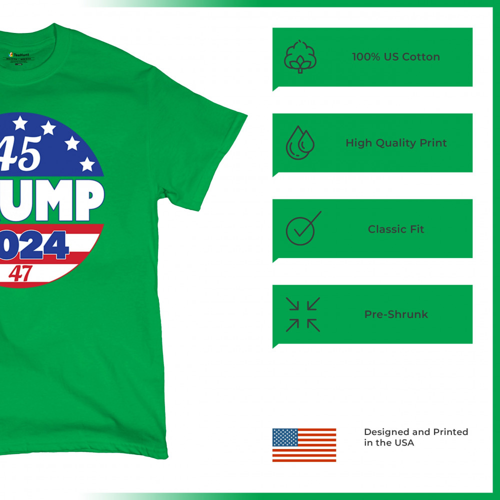 Embrace your conservative pride with this bold "45 TRUMP 2024" design. Representing America First, Republican victory, and the people’s mandate, it’s the perfect way to showcase your support for Donald J. Trump’s historic journey to the 47th presidency. Whether at rallies, political events, or casual outings, this emblem unites Trump supporters in a fight for freedom and patriotism.