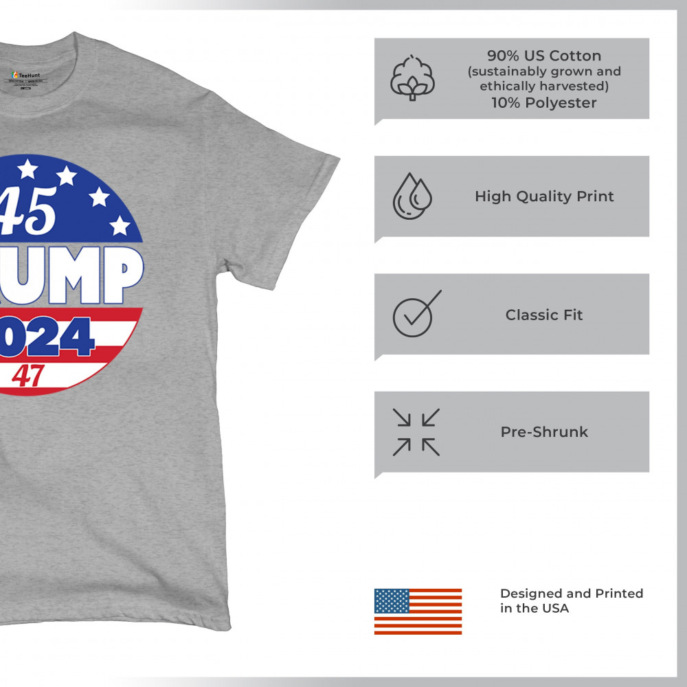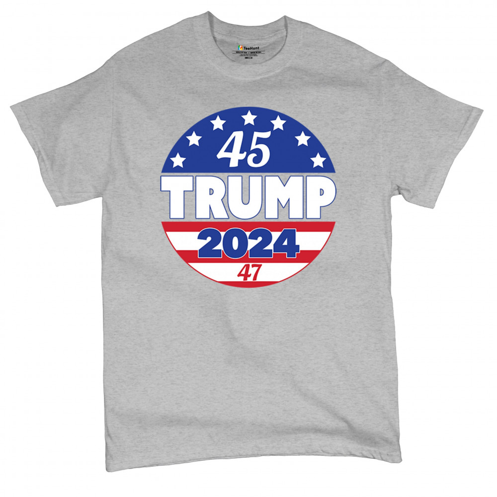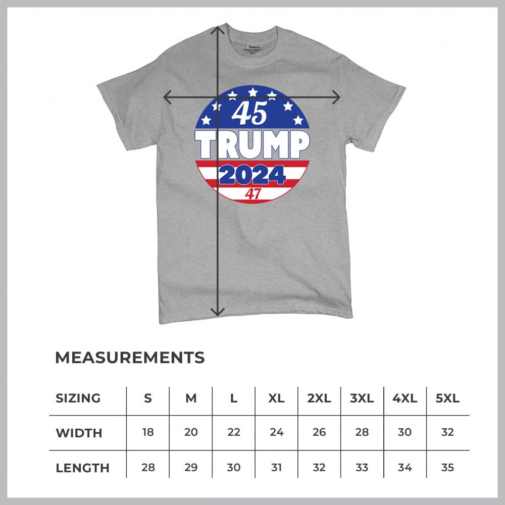 Embrace your conservative pride with this bold "45 TRUMP 2024" design. Representing America First, Republican victory, and the people’s mandate, it’s the perfect way to showcase your support for Donald J. Trump’s historic journey to the 47th presidency. Whether at rallies, political events, or casual outings, this emblem unites Trump supporters in a fight for freedom and patriotism.