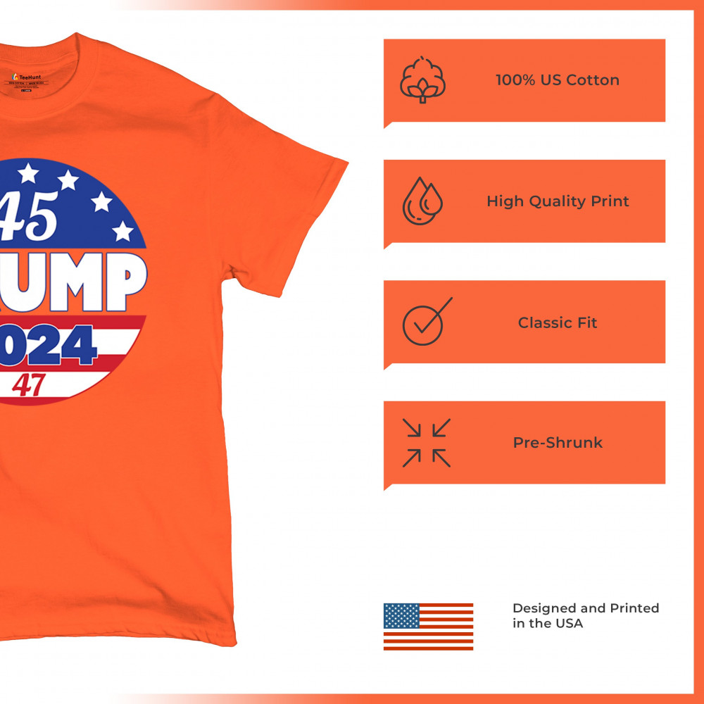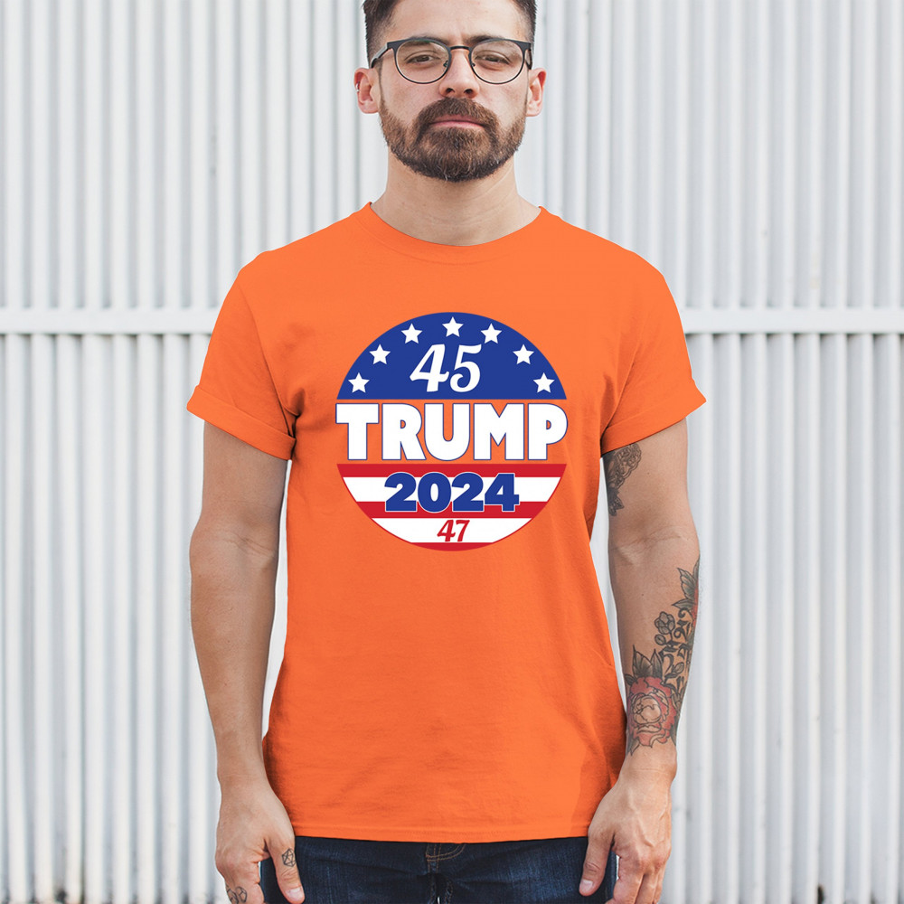 Embrace your conservative pride with this bold "45 TRUMP 2024" design. Representing America First, Republican victory, and the people’s mandate, it’s the perfect way to showcase your support for Donald J. Trump’s historic journey to the 47th presidency. Whether at rallies, political events, or casual outings, this emblem unites Trump supporters in a fight for freedom and patriotism.