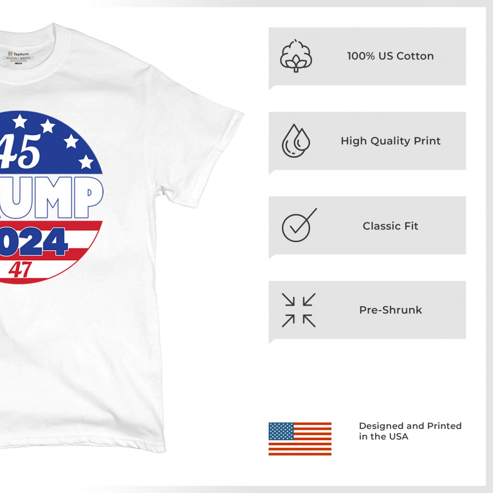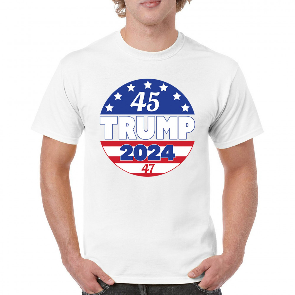 Embrace your conservative pride with this bold "45 TRUMP 2024" design. Representing America First, Republican victory, and the people’s mandate, it’s the perfect way to showcase your support for Donald J. Trump’s historic journey to the 47th presidency. Whether at rallies, political events, or casual outings, this emblem unites Trump supporters in a fight for freedom and patriotism.