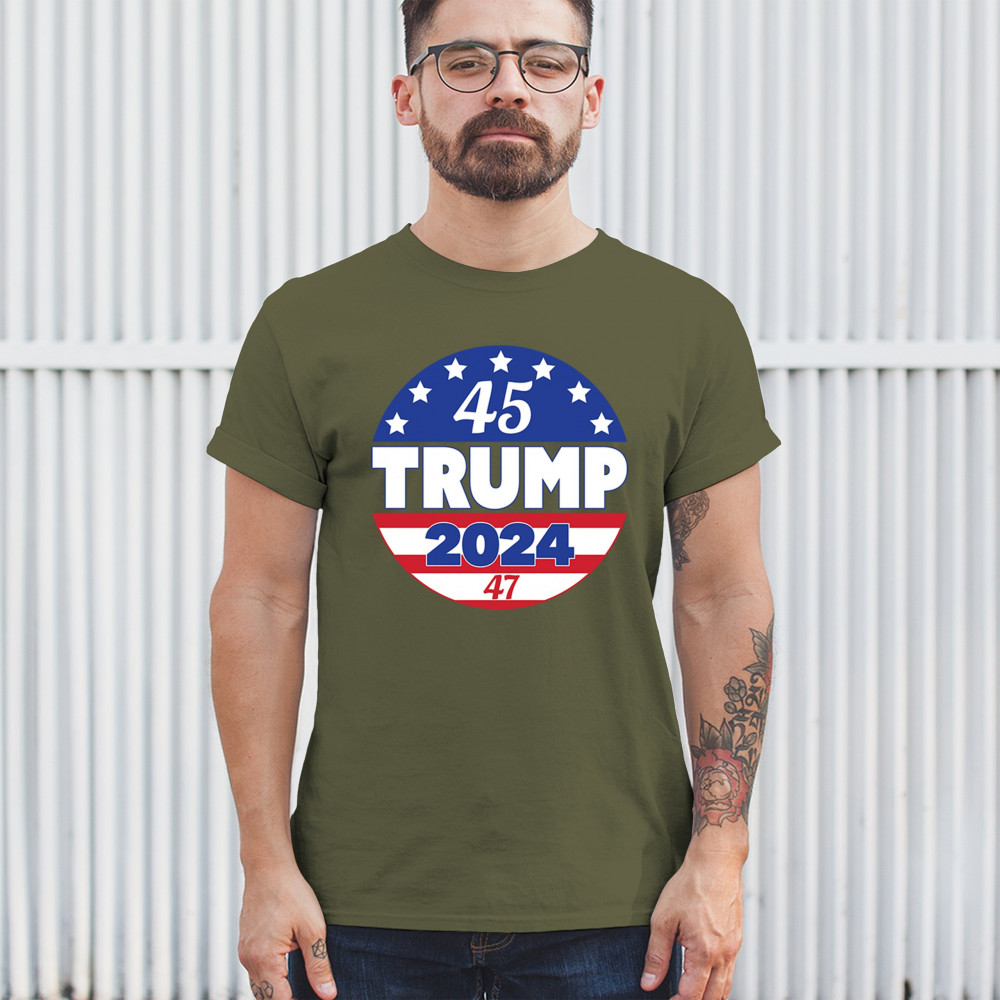 Embrace your conservative pride with this bold "45 TRUMP 2024" design. Representing America First, Republican victory, and the people’s mandate, it’s the perfect way to showcase your support for Donald J. Trump’s historic journey to the 47th presidency. Whether at rallies, political events, or casual outings, this emblem unites Trump supporters in a fight for freedom and patriotism.