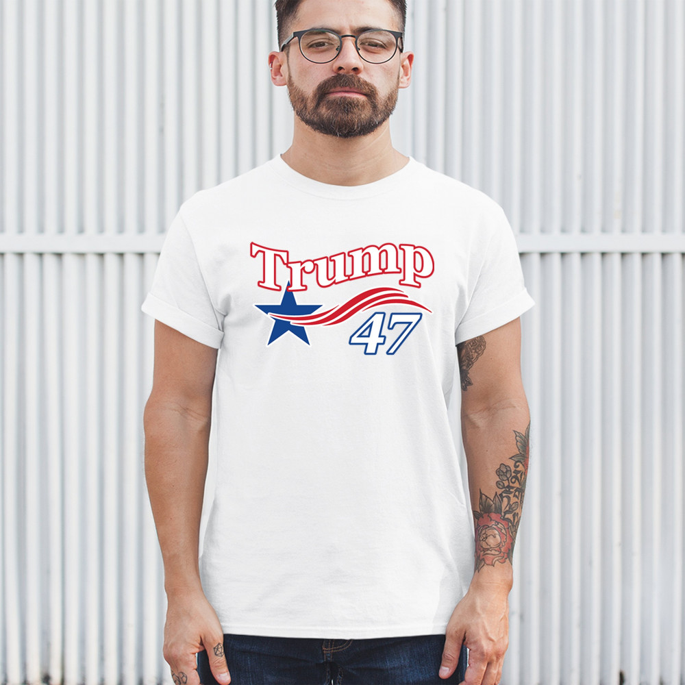 "Trump 47" design for patriotic Trump supporters, celebrating conservative values, Red Wave, and America First with pride and unity for the future.