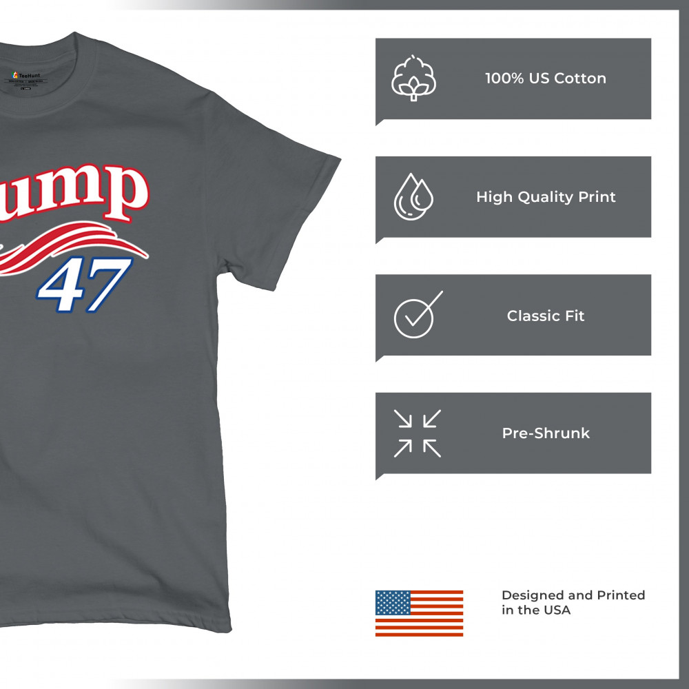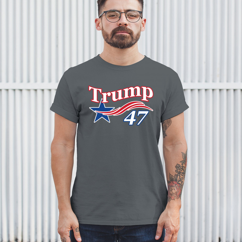 "Trump 47" design for patriotic Trump supporters, celebrating conservative values, Red Wave, and America First with pride and unity for the future.