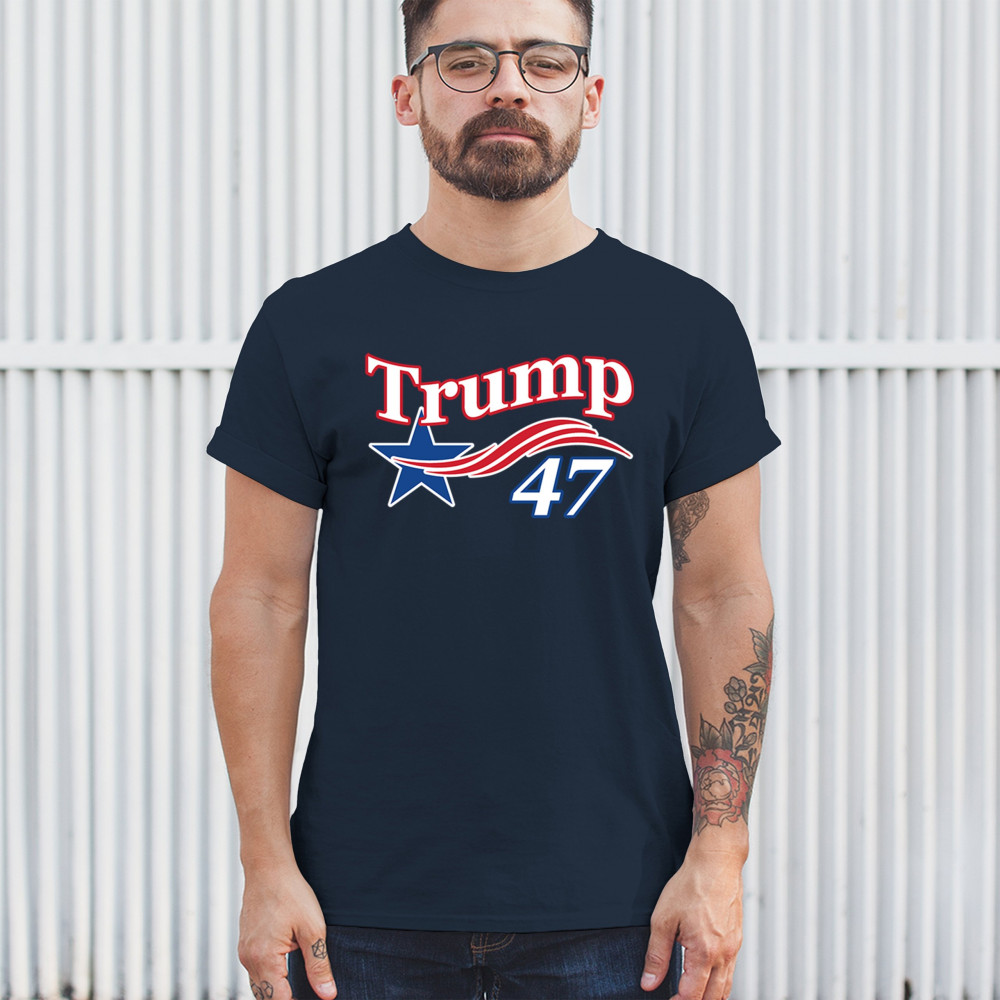 "Trump 47" design for patriotic Trump supporters, celebrating conservative values, Red Wave, and America First with pride and unity for the future.