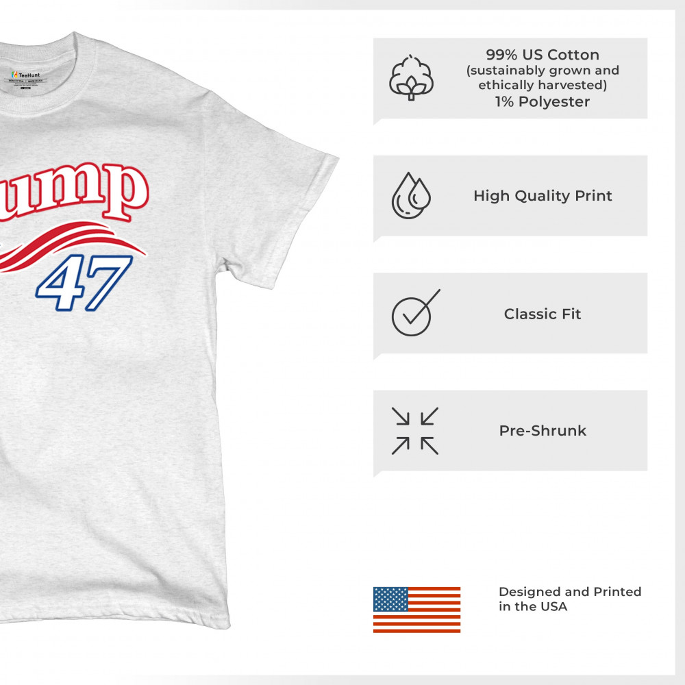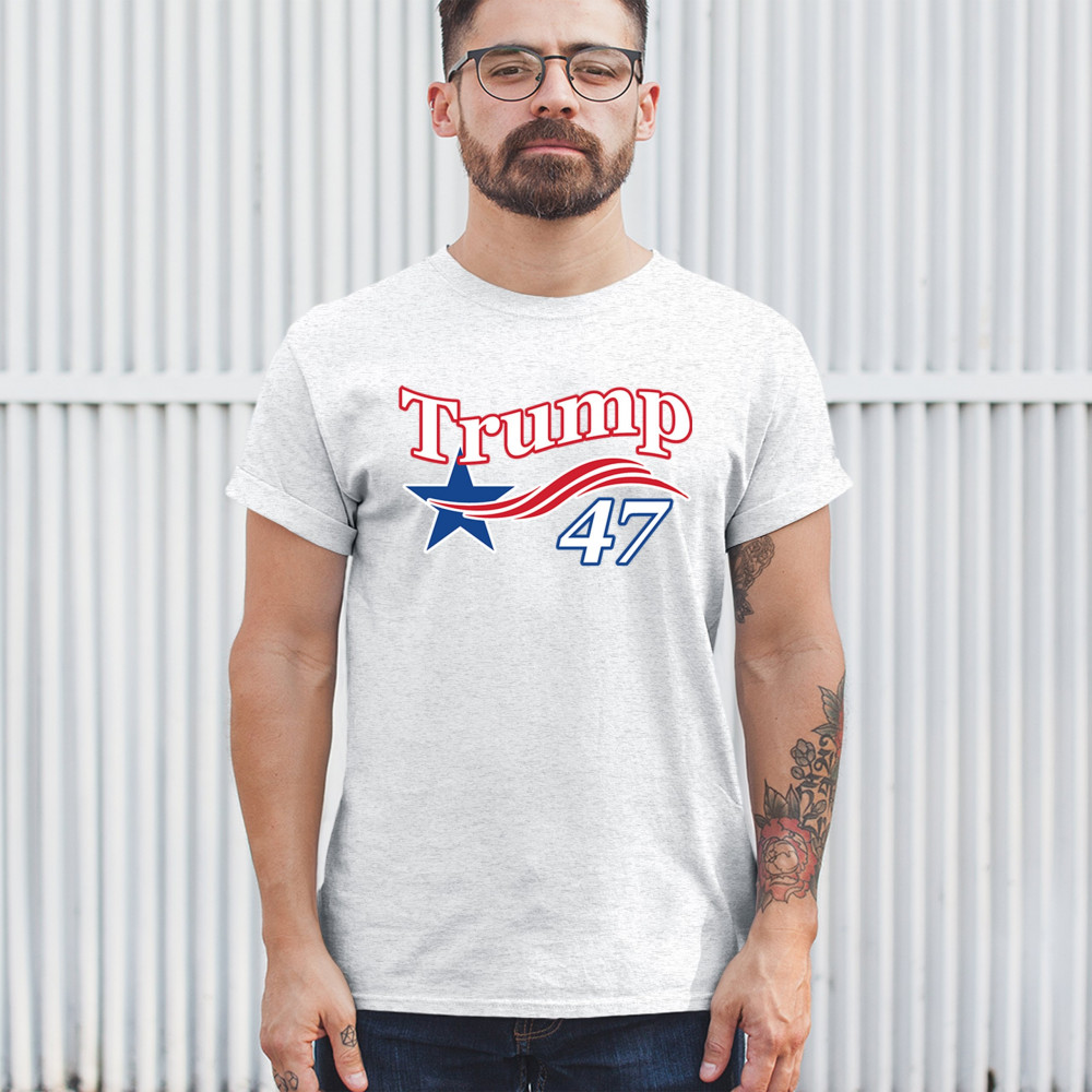 "Trump 47" design for patriotic Trump supporters, celebrating conservative values, Red Wave, and America First with pride and unity for the future.