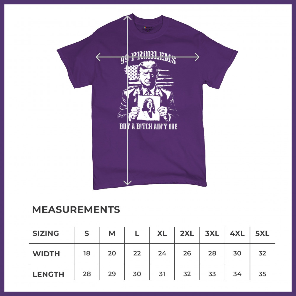 Celebrate bold conservative values with the "99 Problems But a B*tch Ain’t One" design, featuring Donald J. Trump and an iconic American flag backdrop. Perfect for Trump supporters, Republicans, and patriots committed to the fight for freedom and America First principles. This humorous and eye-catching design is ideal for rallies, events, or as a standout gift for fellow conservatives.