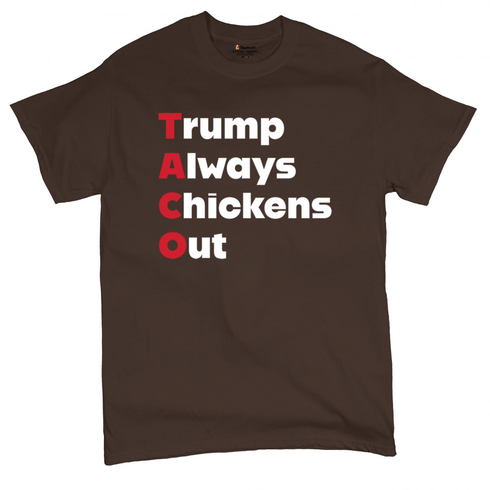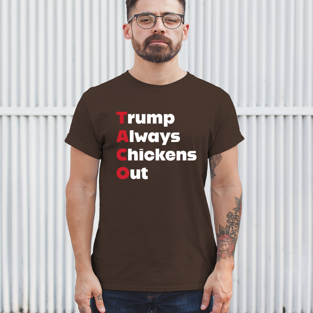 Trump Always Chickens Out is bold protest fashion for anti-dictator activists, political satire fans, and no kings supporters.
